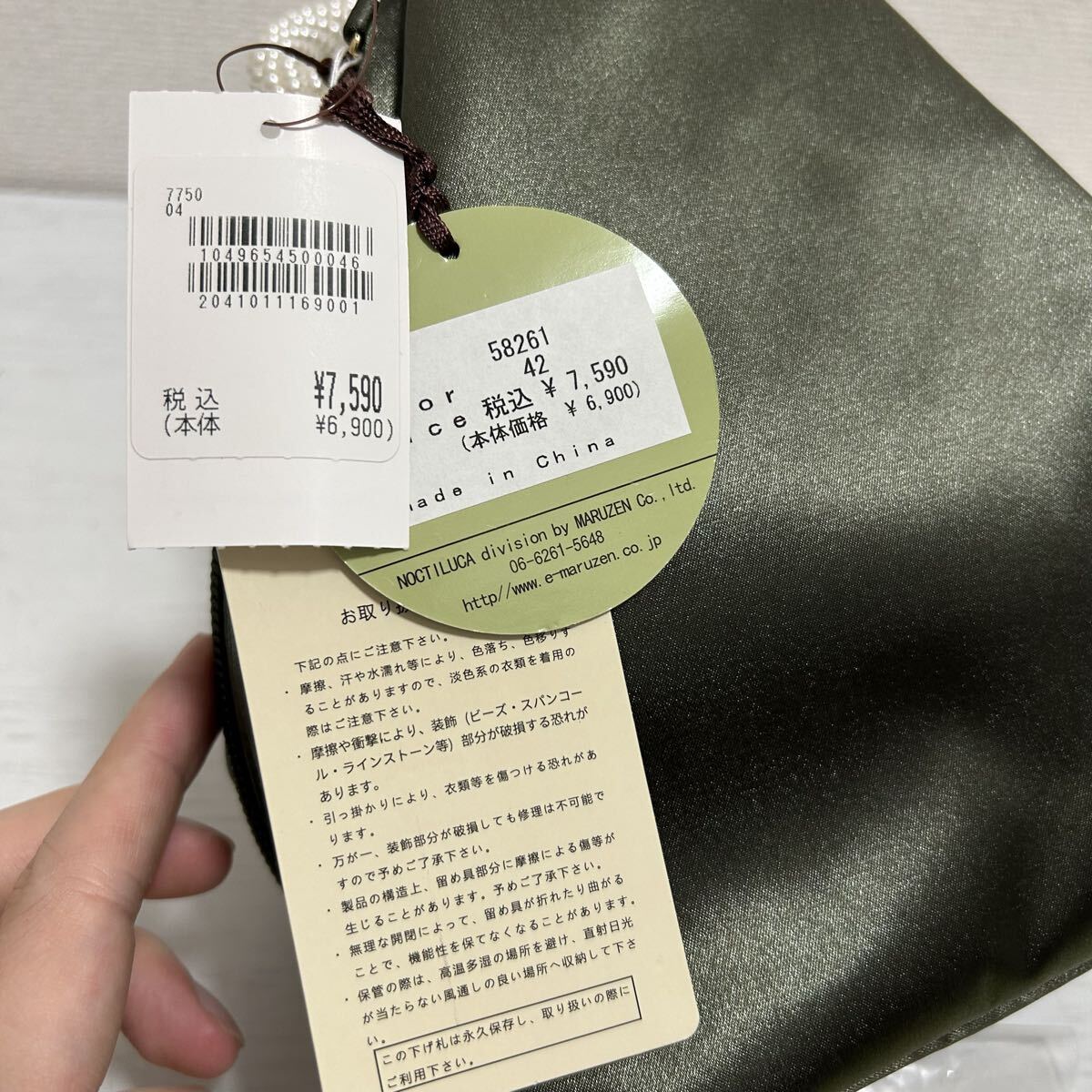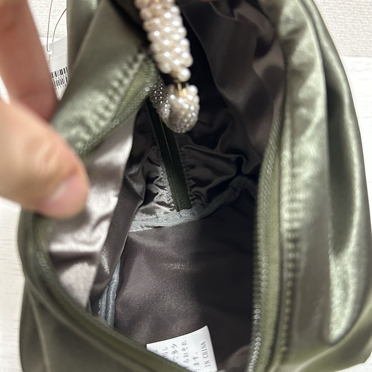 落ち着いたグリーンにパール風の持ち手が可愛いです◎