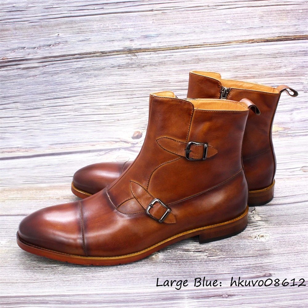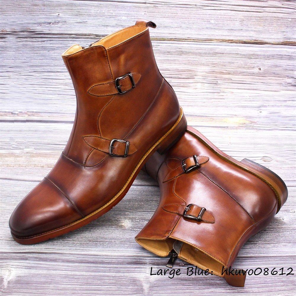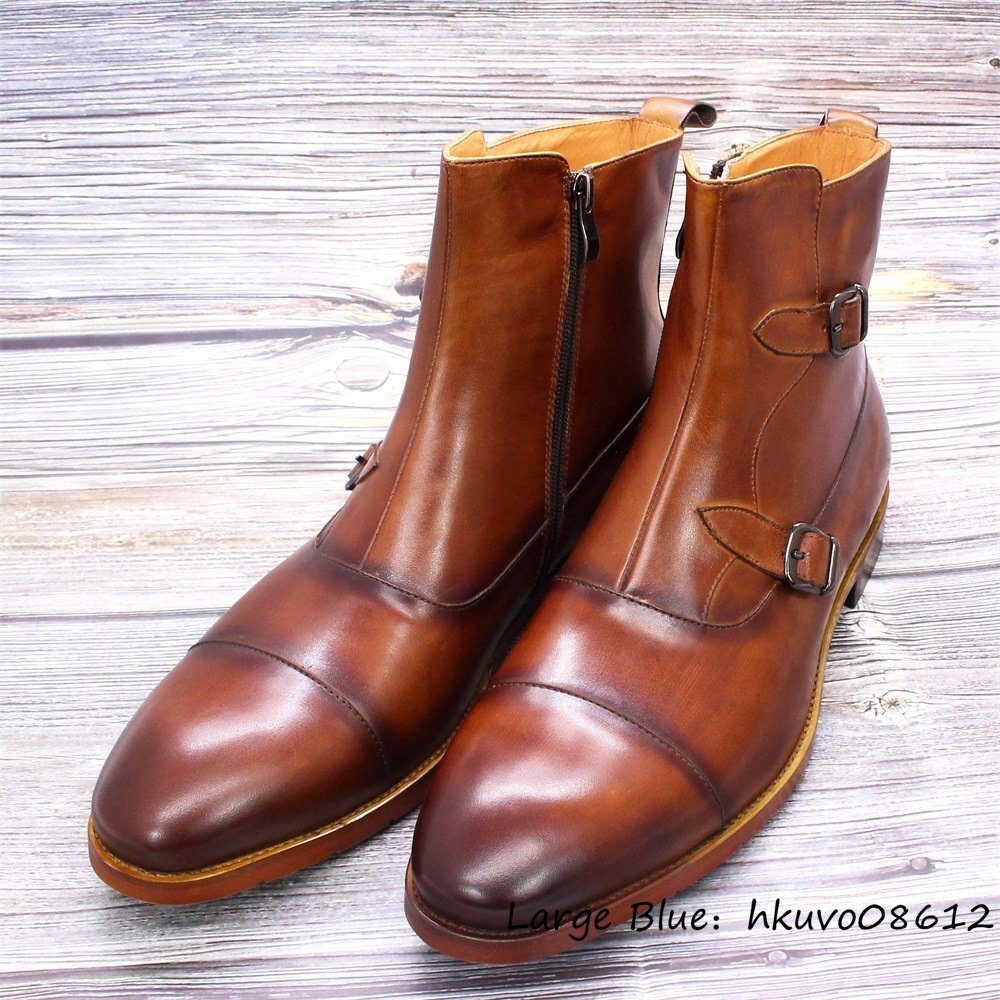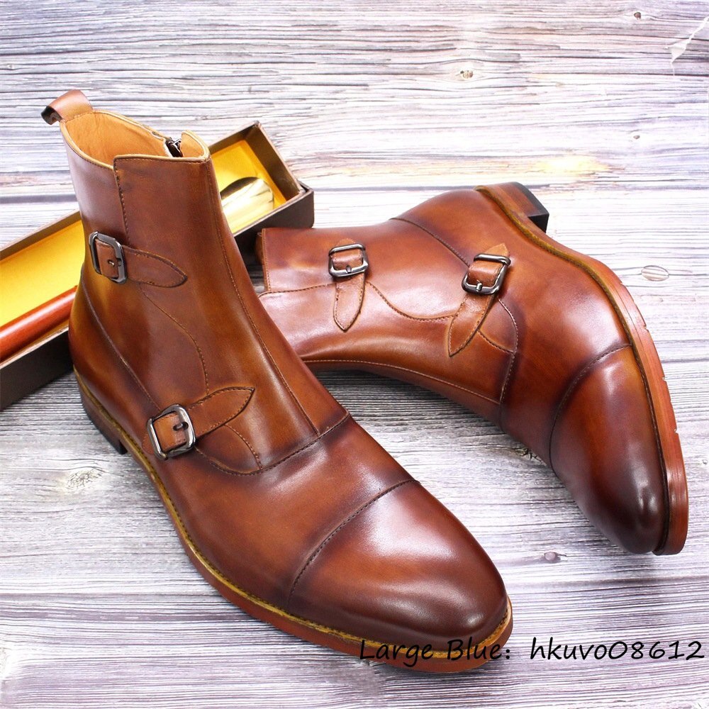 定価12万■ショートブーツ 最高級エンジニアブーツ マーティンブーツ 牛革ビジネスシューズ 職人手作り 本革 レザーブーツ ブラウン 24.5cm