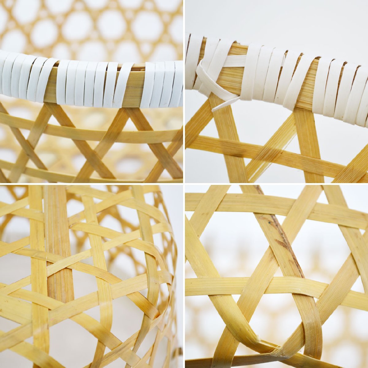軽くて丈夫、通気性もよい、機能的な竹かご。