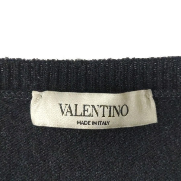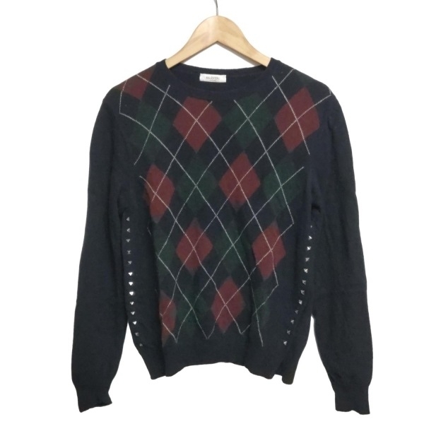 バレンチノ VALENTINO 長袖セーター/ニット サイズM - ダークネイビー×ボルドー×マルチ メンズ クルーネック/アーガイル/スタッズ
