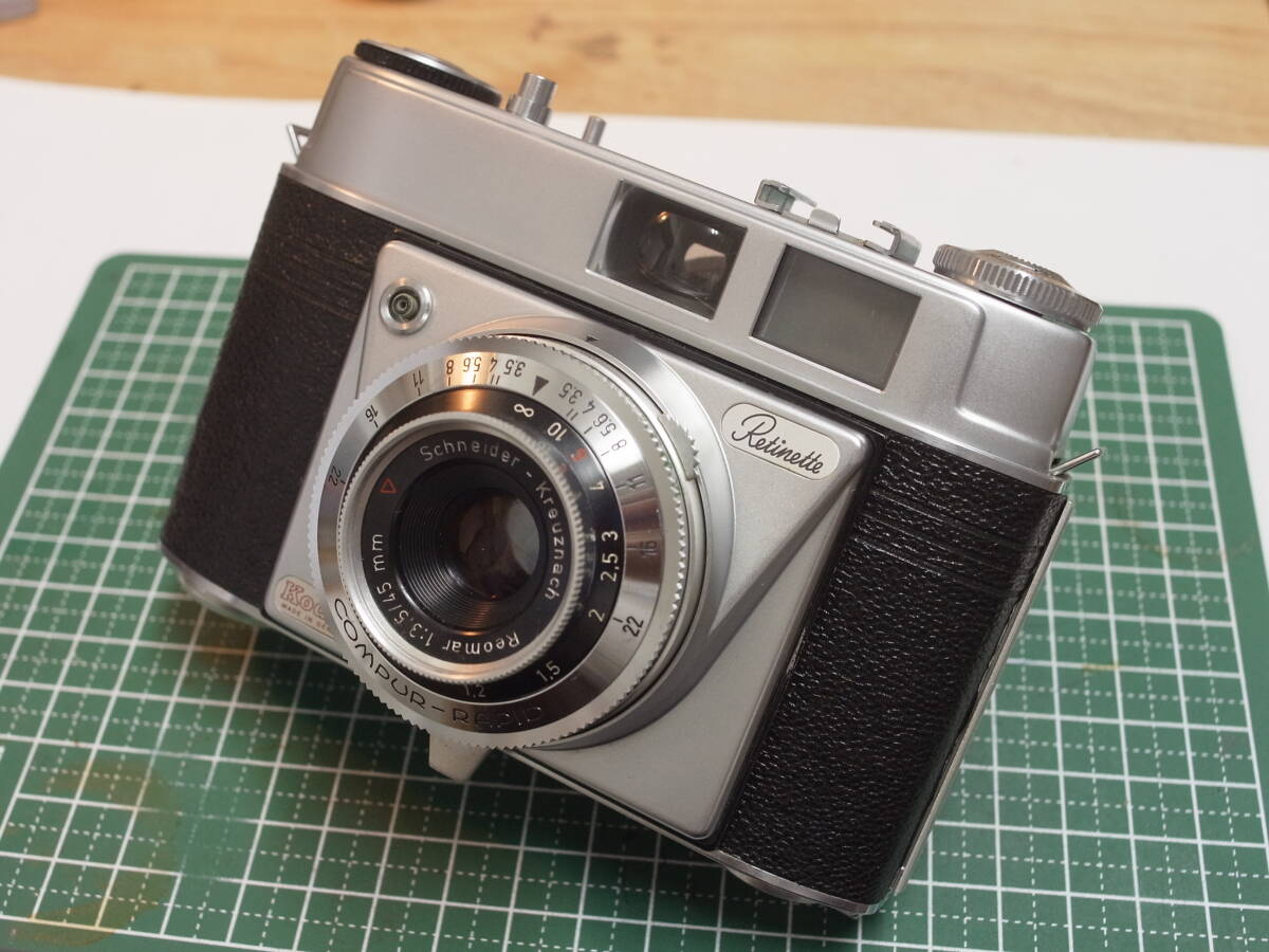 レチナシリーズの下位に当たる普及機クラスの製品ですが、レチナよりも可動部の少ないシンプルで堅実な造りからトラブルの少ない安定したカメラです。レンズはトリプレットのレオマーを搭載しています。