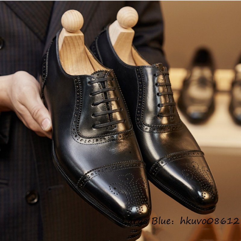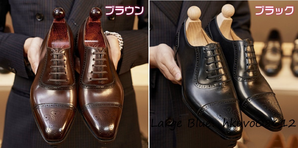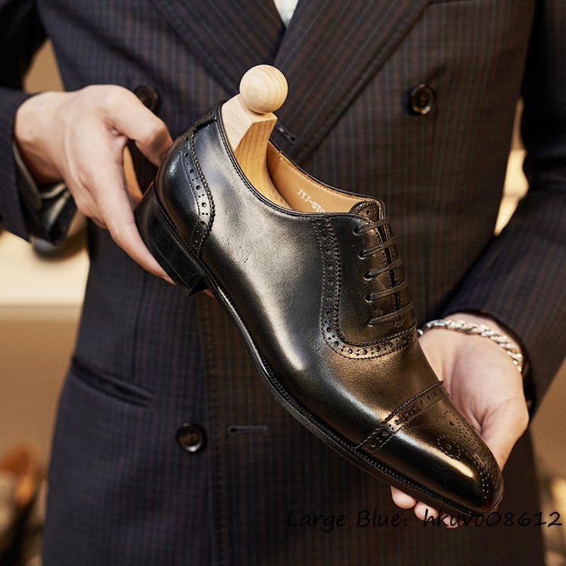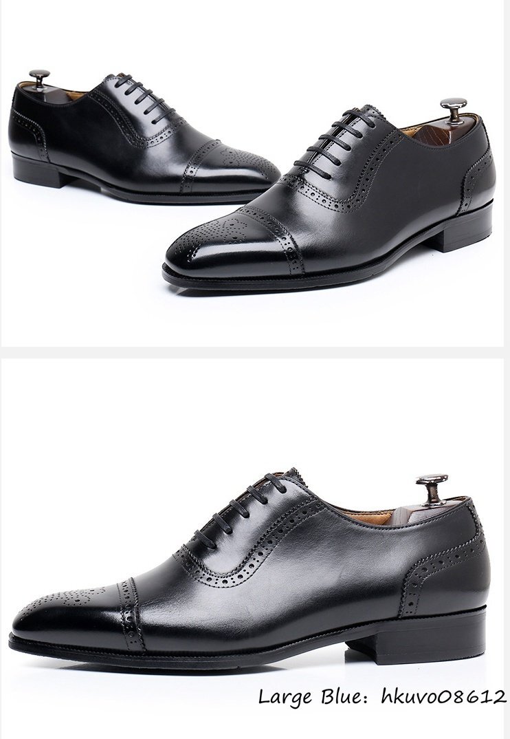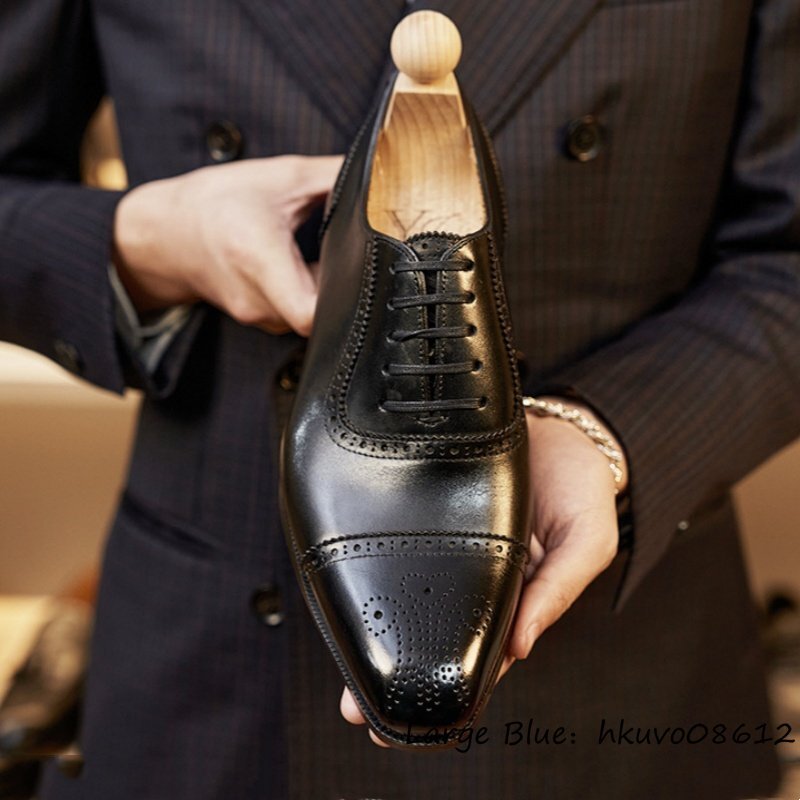 入手困難*超希少 ビジネスシューズ メンズ 彫り 職人手作り 本革レザーシューズ 牛革 革靴 紳士靴 ドレス 宴会 フォーマル ブラック 25.0cm