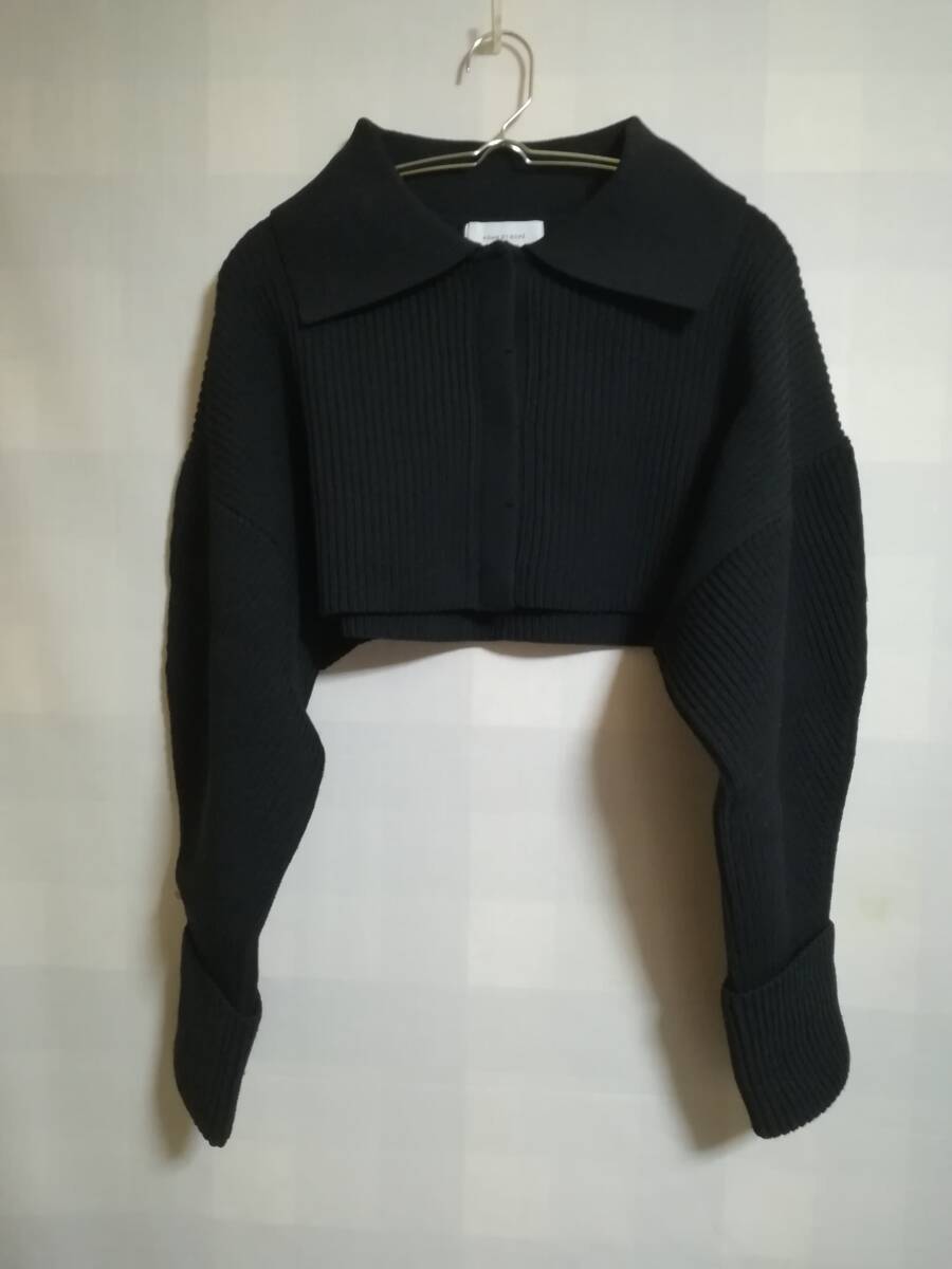 カーディガン:スタイルアップが叶うバランスが嬉しい、ショート丈の襟付きカーディガン。袖口は折り返す仕様になっており、お好みの長さに調整が可能。比翼仕立てで、襟付きのプルオーバーのように着用することもできる汎用性もポイント。
