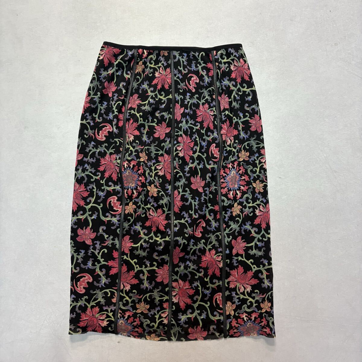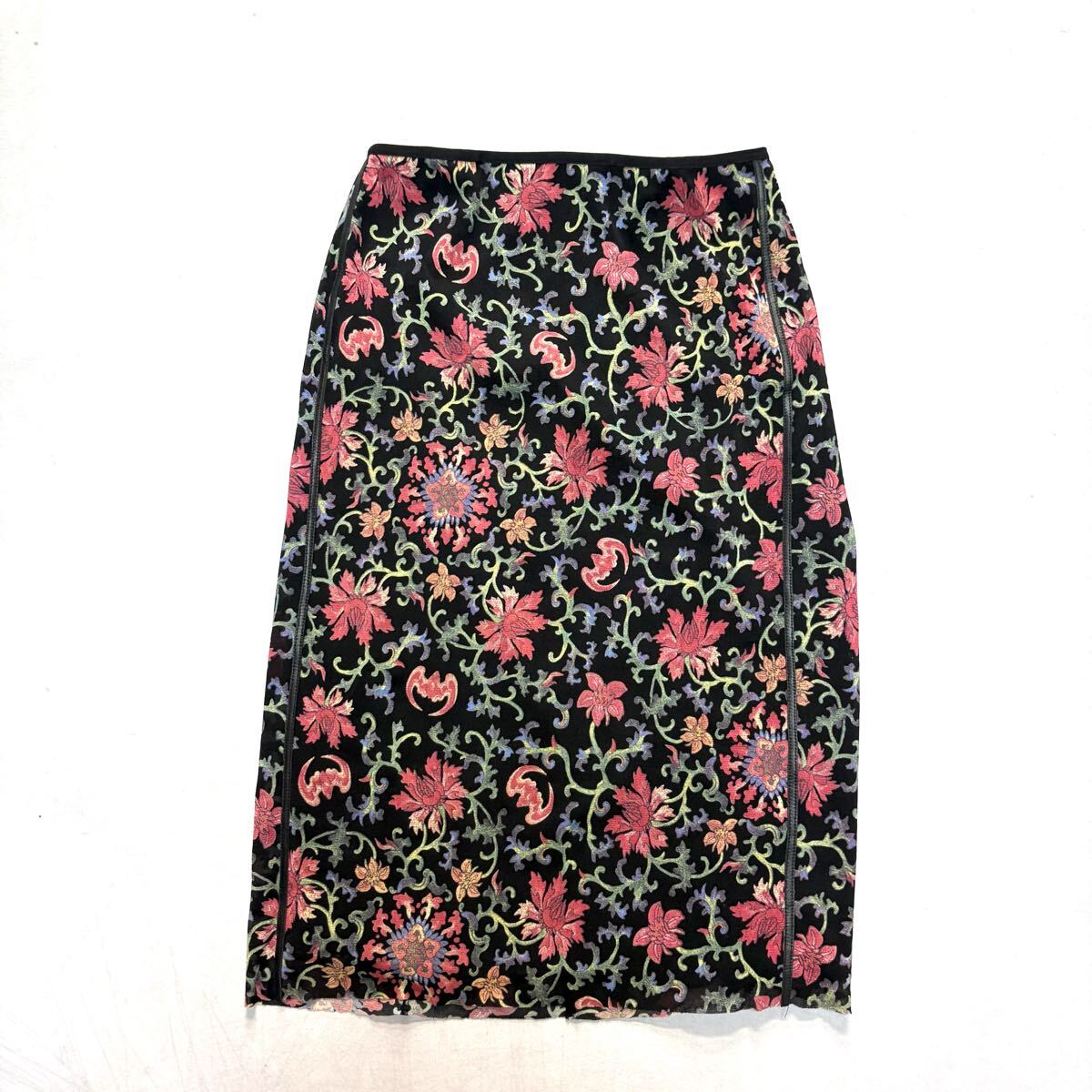 DD ■ 希少 00's ビンテージ '高級感溢れる' VIVIENNE TAM ヴィヴィアンタム Y2K ナイロン 花柄 総柄 フリル スカート 0 レディース 古着