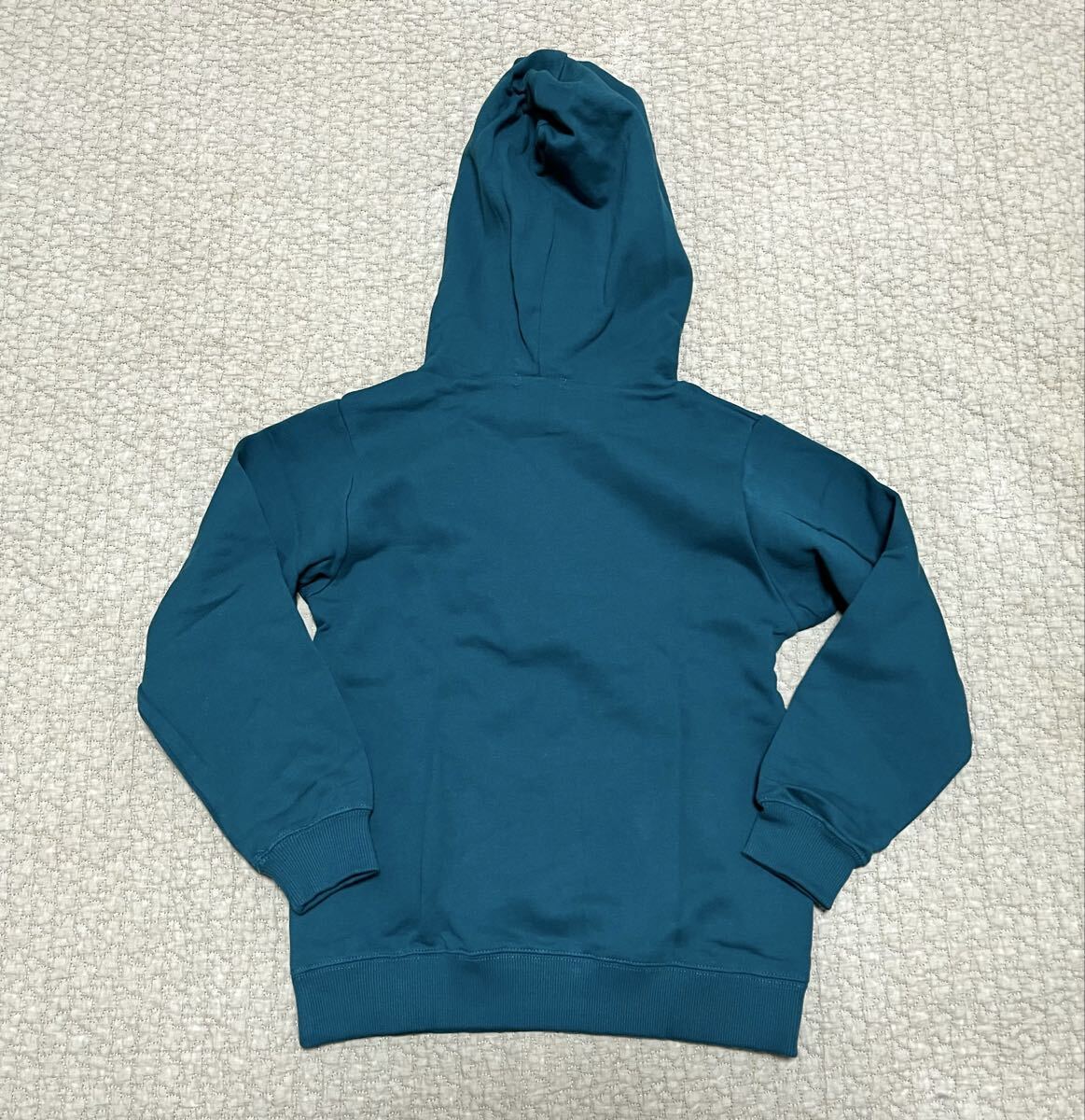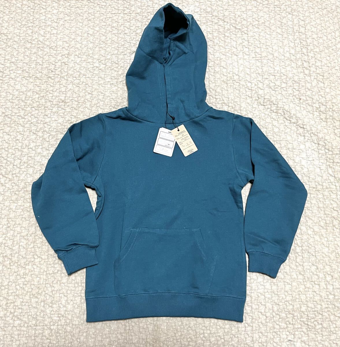 コットン100%のしっかりとした生地のフード付きパーカー。