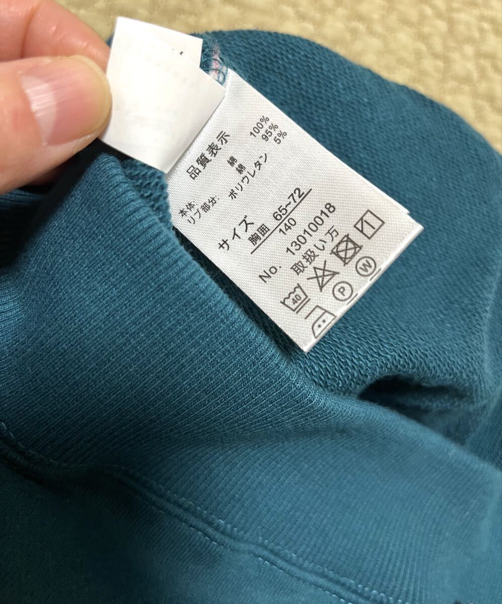 結局同じ生地のトレーナータイプを購入しましたが、綺麗な状態をキープできておりとても良いです。