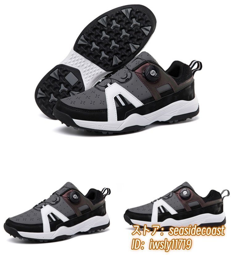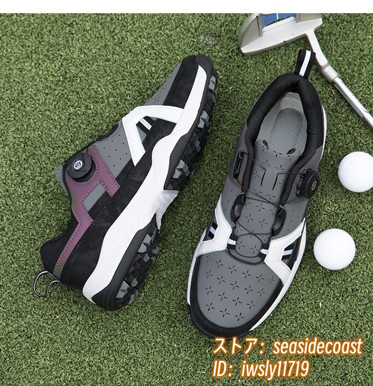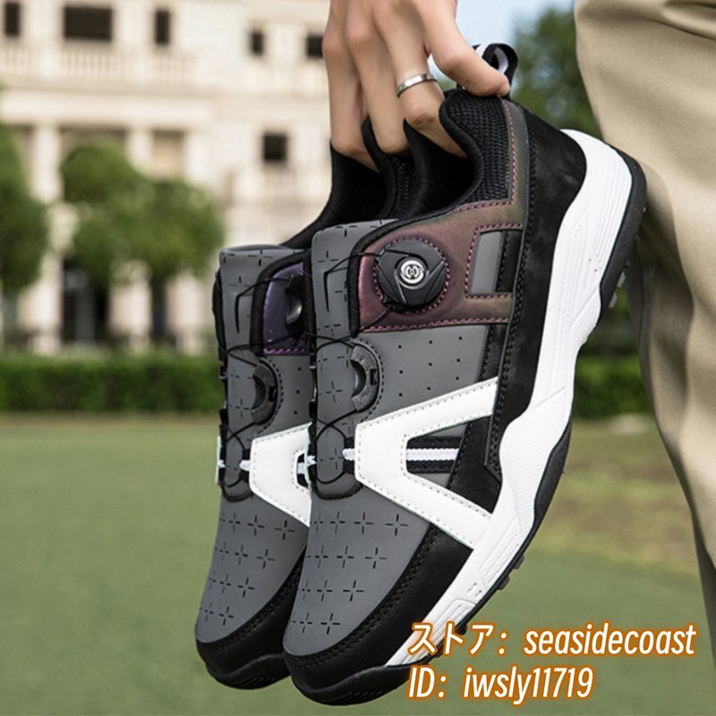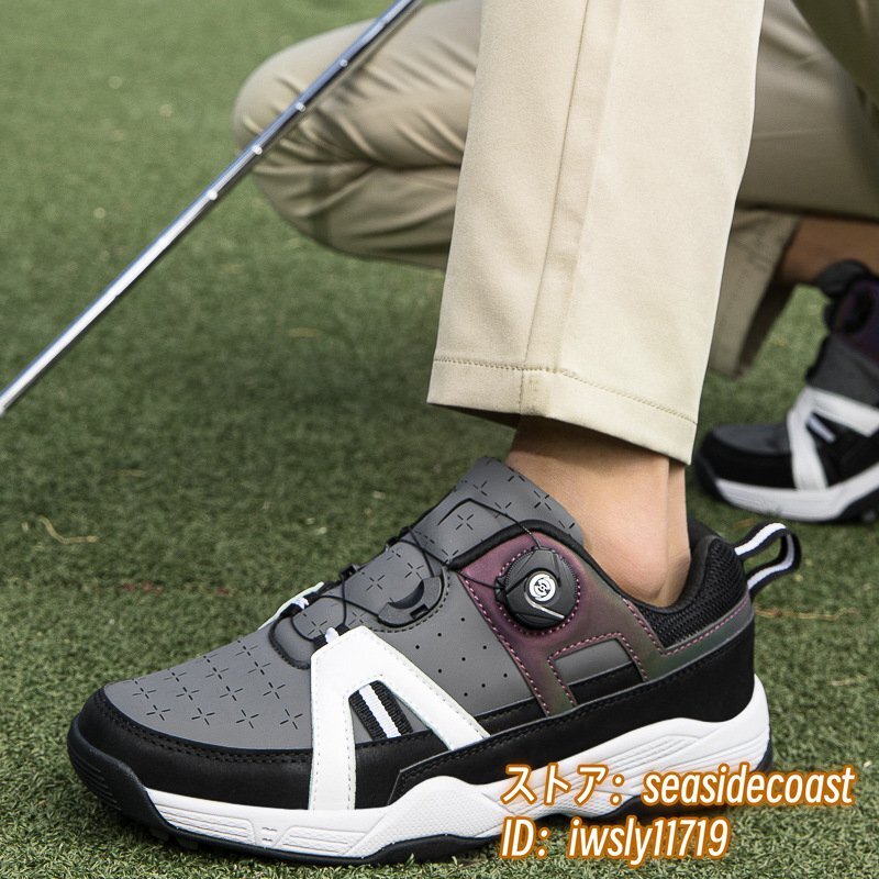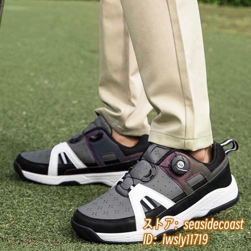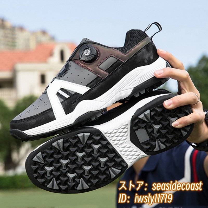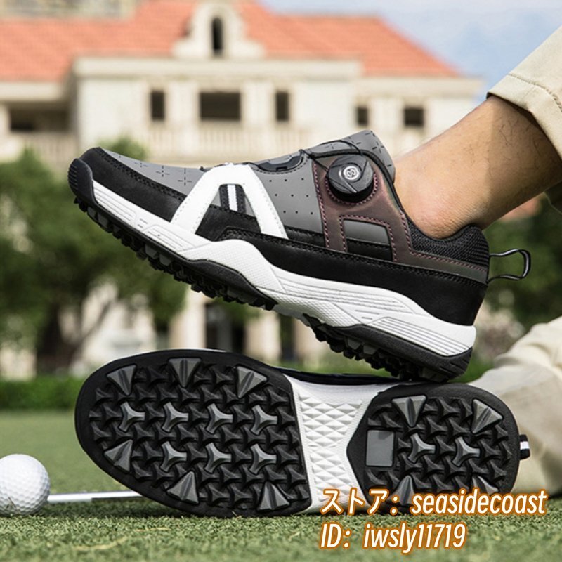 高級品 ゴルフシューズ 運動靴 フィット感 スポーツシューズ ソフトスパイク 強いグリップ 軽量 弾力性 通気性 防水 防滑 ブラック 25.0cm