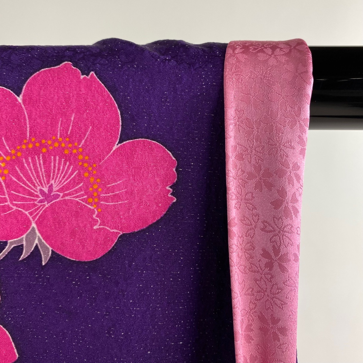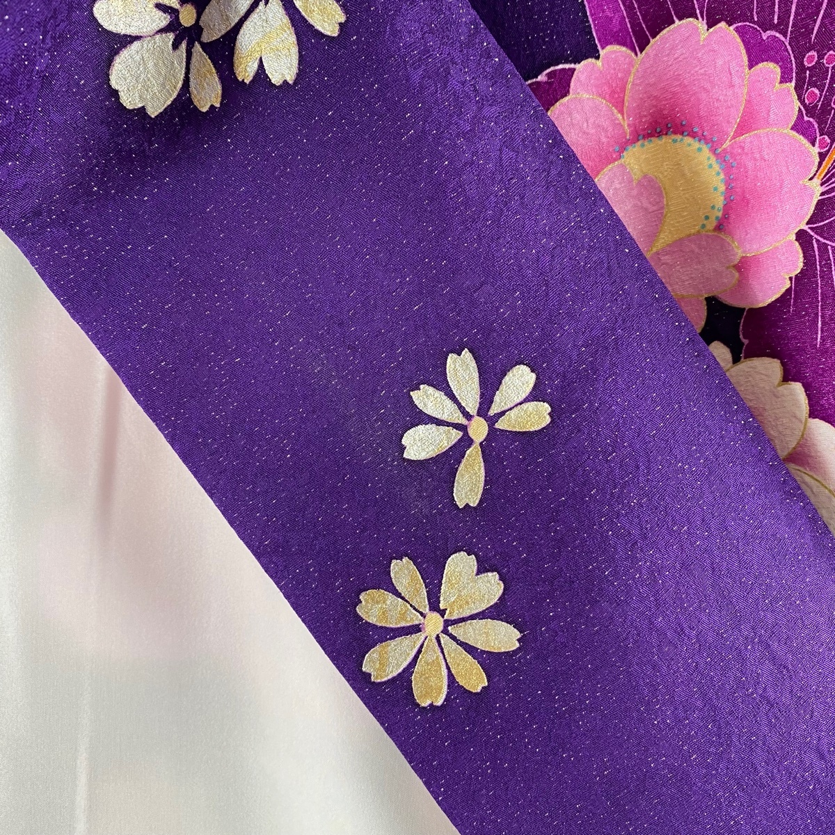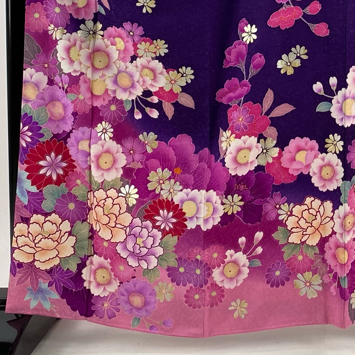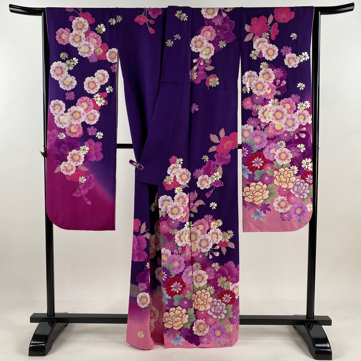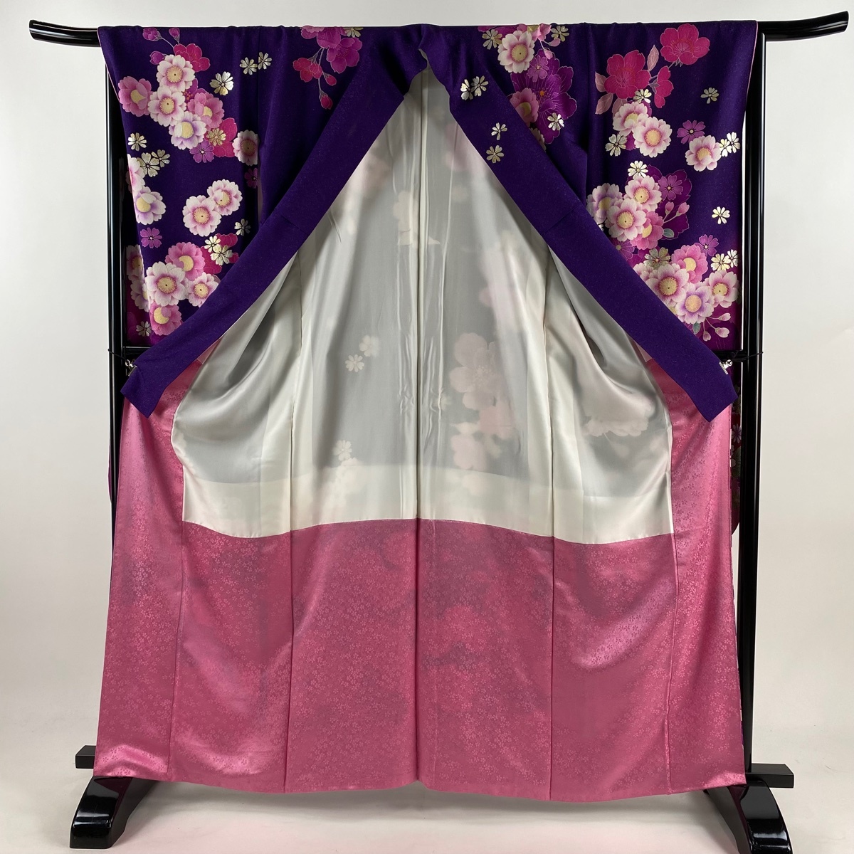 | 振袖 美品 逸品 桜 牡丹 銀通し 金糸 濃紫 袷 身丈163.5 裄丈67 M 正絹 【中古】 |