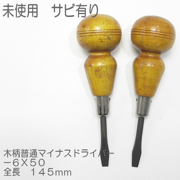 2個まとめて 木柄普通マイナスドライバー -6X50 未使用 サビ有り