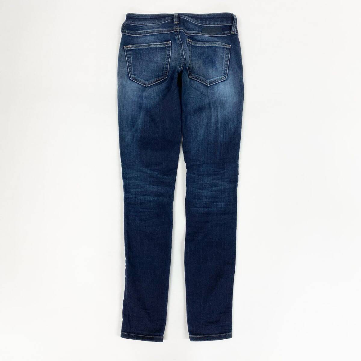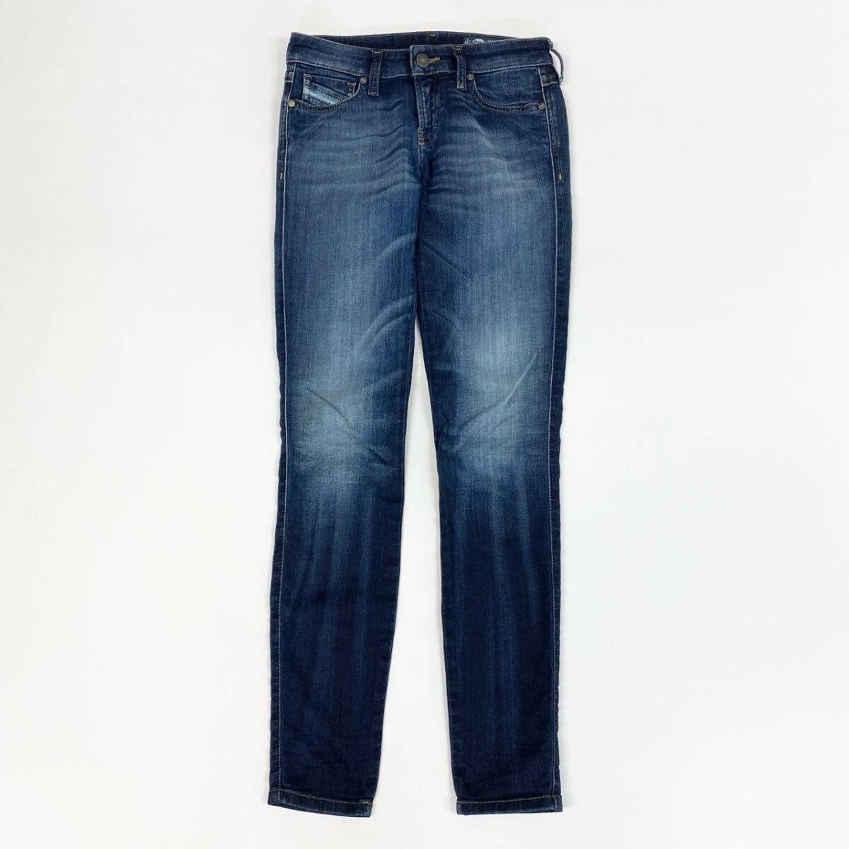 | AIによるサイズ診断 | 本品はレディースのストレッチスウェットデニムで、表記サイズ23。 実寸はウエスト33cm・股上18cm・股下75cm・渡り20cm・裾幅12cmのスリムシルエットです。 身長155〜163cm前後、ウエスト58〜62cm程度の方に最適で、タイトめながらストレッチ素材のため動きやすさも確保されています。 |