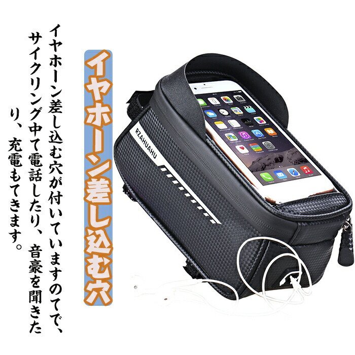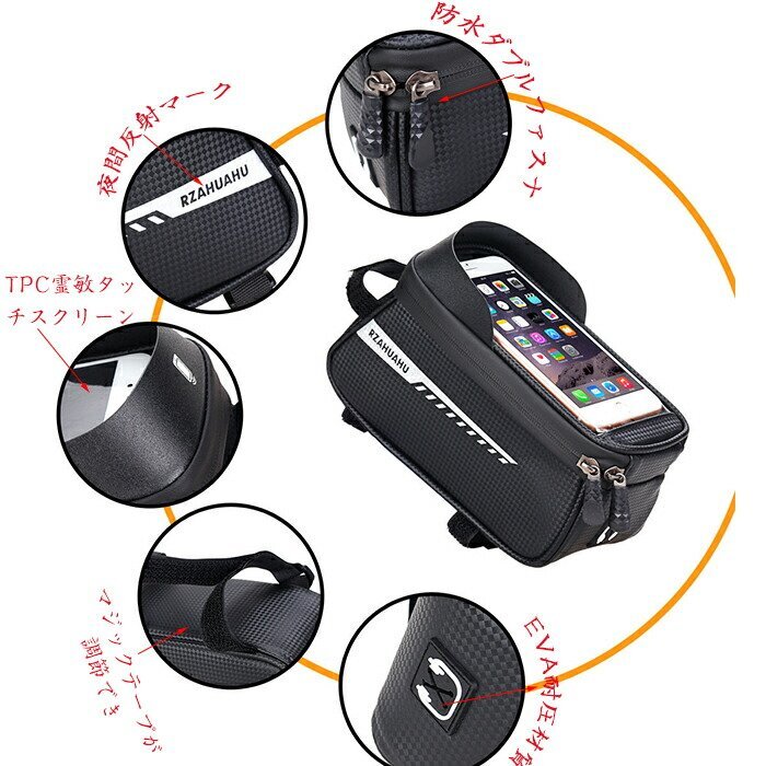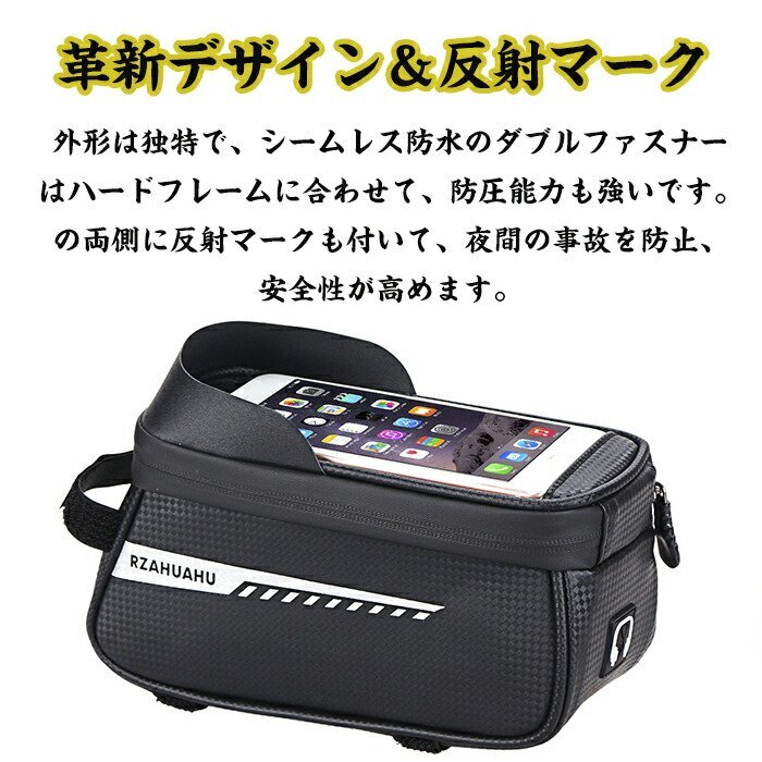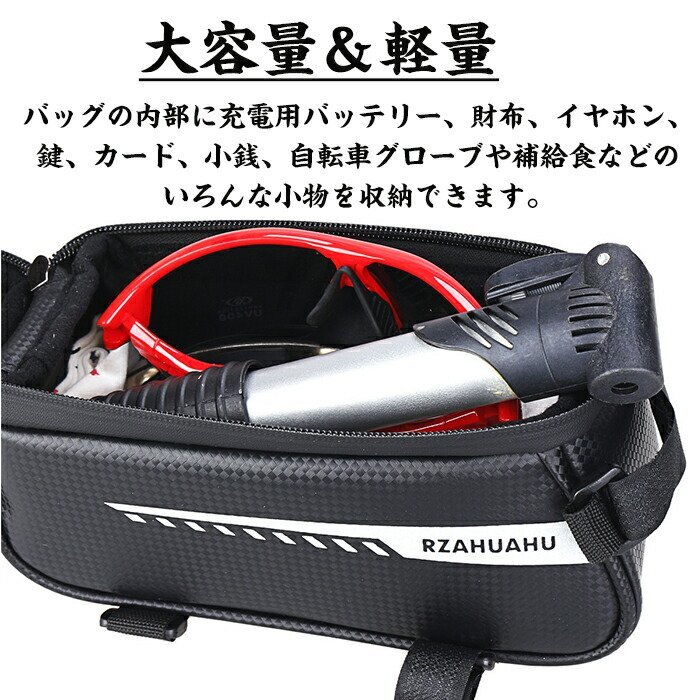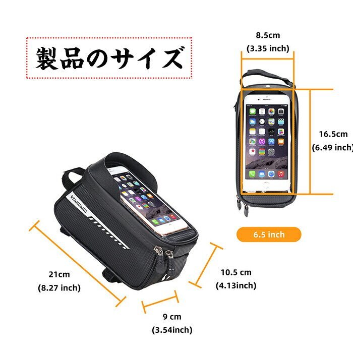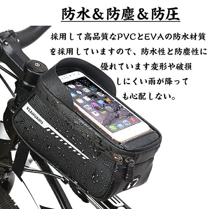 自転車トップチューブバッグ 自転車フレームバッグ 自転車バッグ 強力固定 高感度タッチスクリーン PVC材質 大容量軽量6.5インチ☆1点