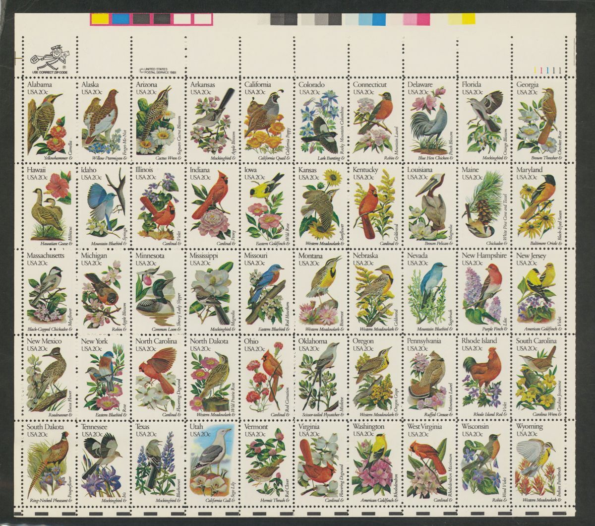 外国切手 アメリカ(USA) 記念切手 50州の州花と州鳥 50枚シート 未使用