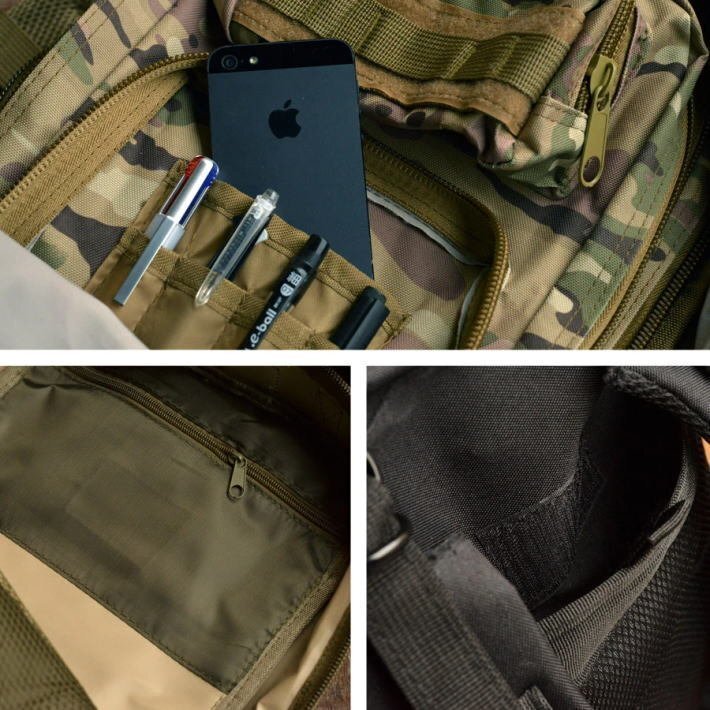 The large main compartment features a zippered pouch, mesh pocket and is hydration bladder compatible, the pack also has three additional pockets and storage compartments. The large storage options make the pack ideal for carrying gear or filling it with your entire Bug Out Bag Supplies. For extra comfort, the pack has been equipped with padded back and shoulder straps with breathable mesh backing.