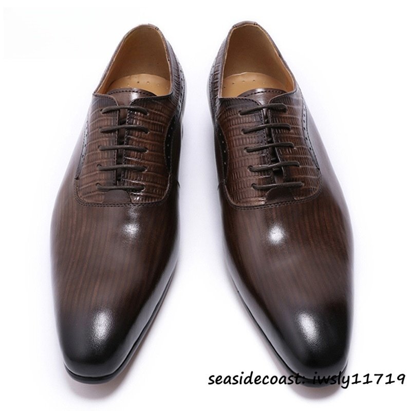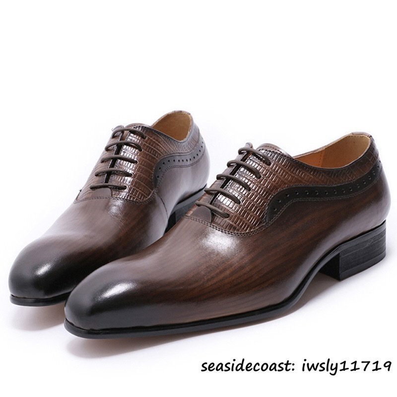 定価9万超★最高級 牛革 ビジネスシューズ 本革 レザーシューズ 職人手作り 紳士靴 フォーマル 革靴 結婚式 フォーマル ブラウン 26.5cm