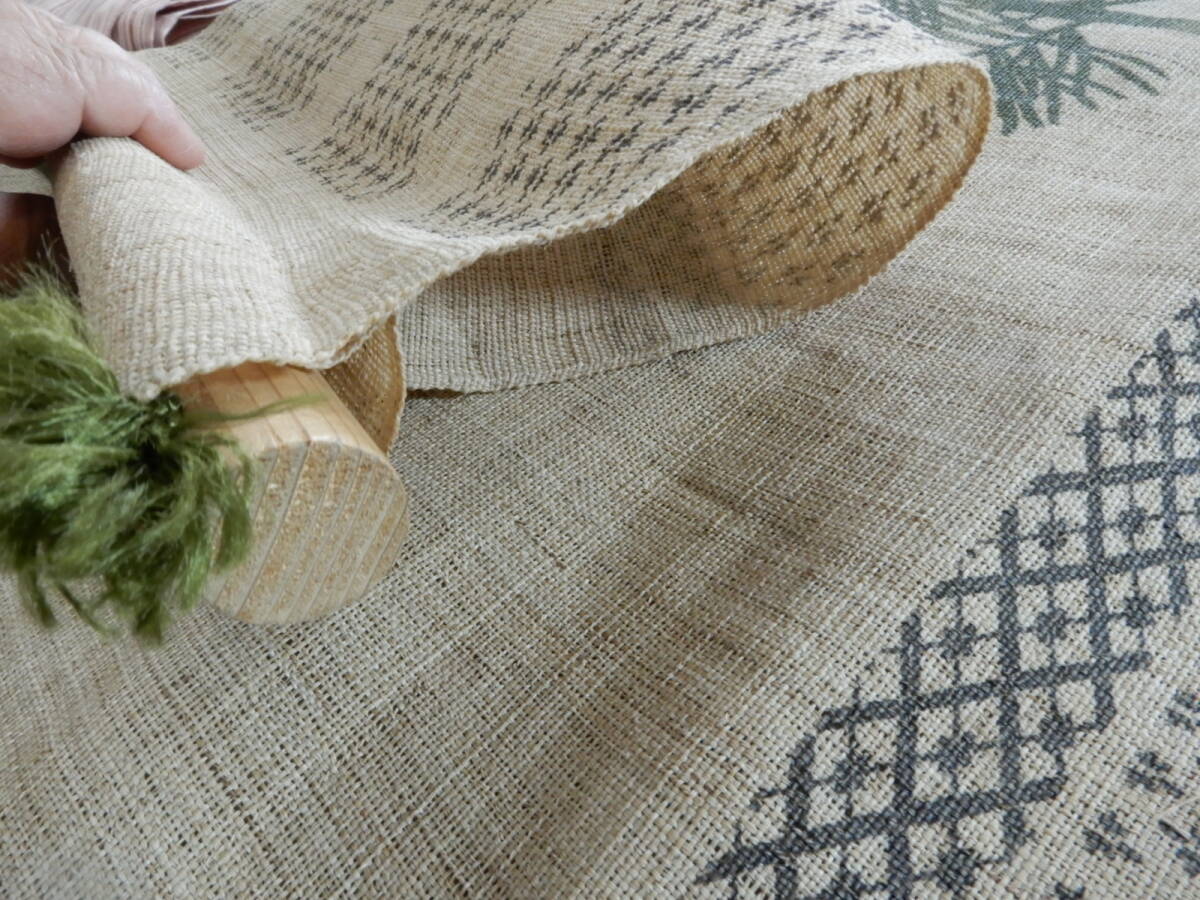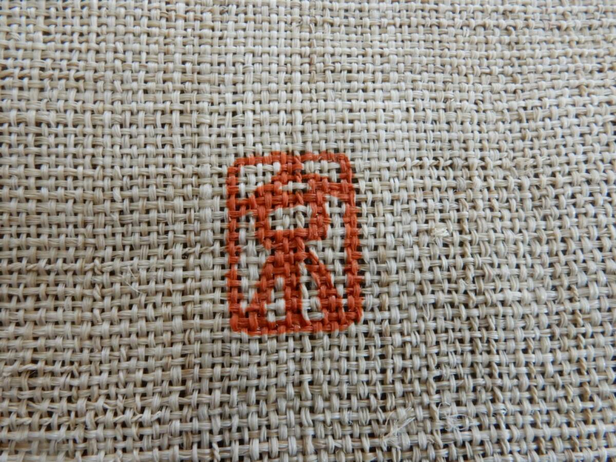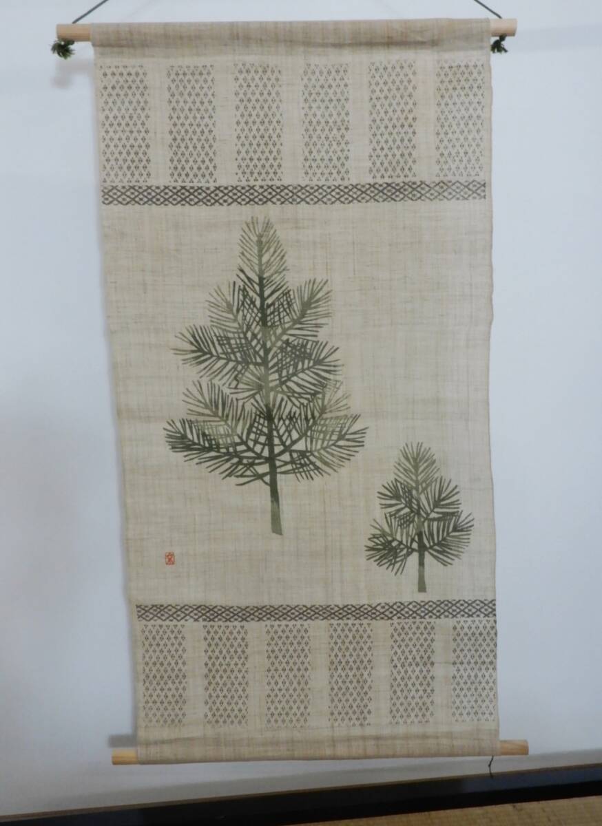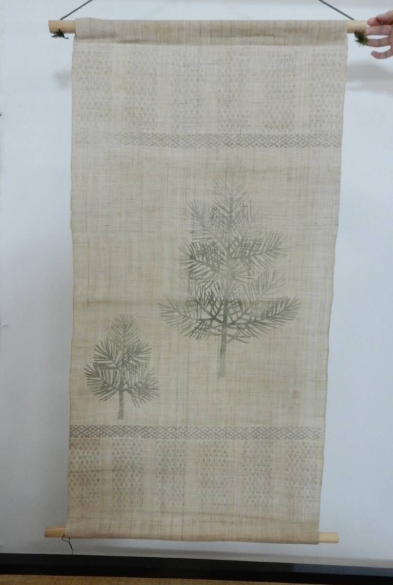 <銀の斧>麻地・タペストリー・若松・落款あり・約114x58cm