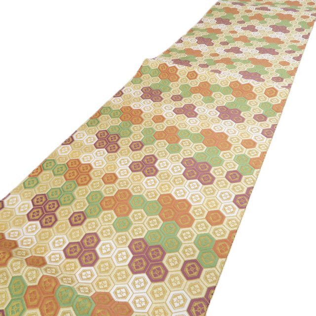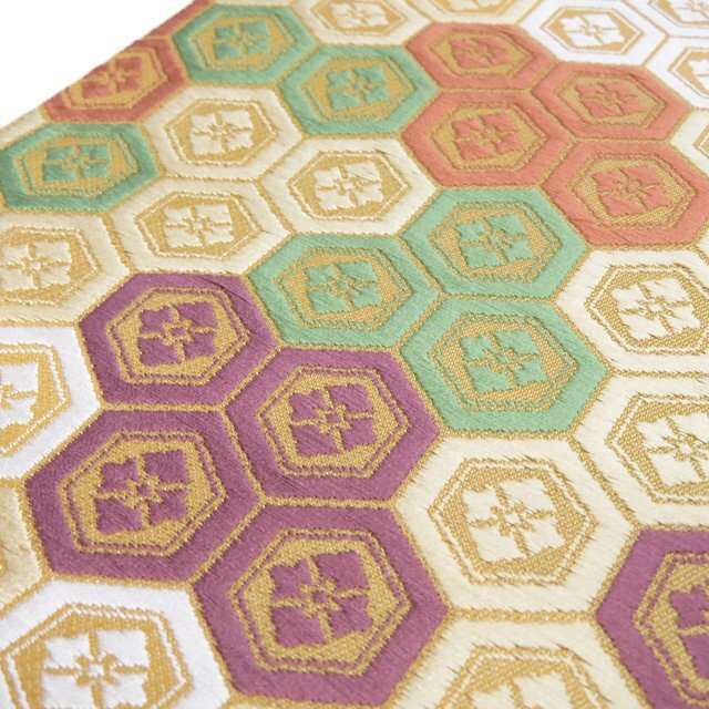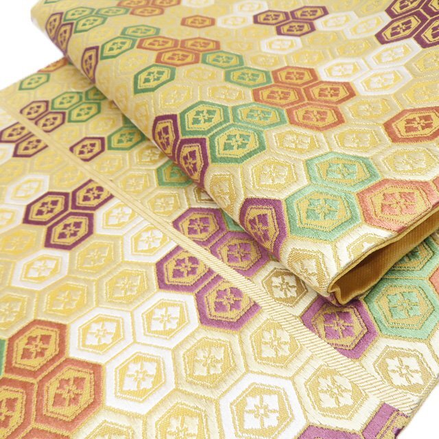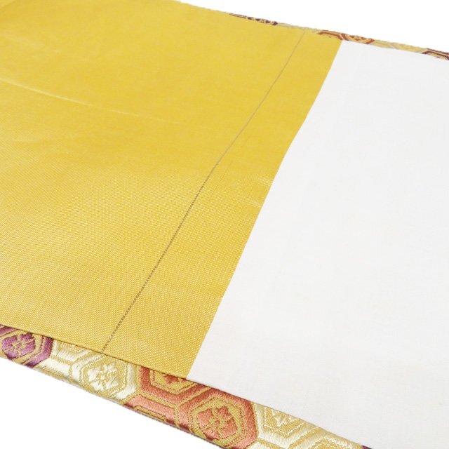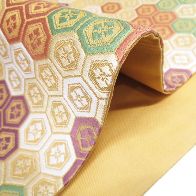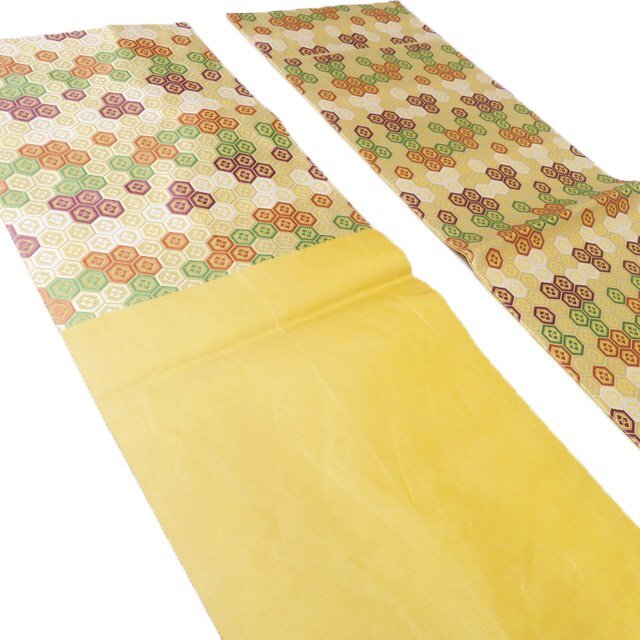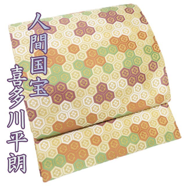 サイズ 375.5cm x 30cm 素材 正絹 商品ランク C お色 黄系色 多色 昭和時代の染色工芸家であり、重要無形文化財「有職織物」の保持者、【喜多川平朗】氏。 昭和31年、「羅」(網目状の透けたからみ織りの薄地の絹織物)の再現による人間国宝に認定、さらに昭和35年には「有職織物」によっても人間国宝に認定され、2つの技術保持者となりました。 正倉院裂などの古典染織の研究と復元につとめた氏の作品、是非お手に取ってご堪能くださいませ。 裏地全体的にアクがございますが、表側は綺麗でまだまだご着用いただけるお品物です。 保管臭が残っています。気になる方はご購入をお控えください。 写真に写っている帯のみの販売で、小物等の付属品はついておりません。 一部商品は実店舗・他サイトでも並行して販売しておりますので売り切れの際はご了承ください。 その他多数販売中 ga- | ||||||