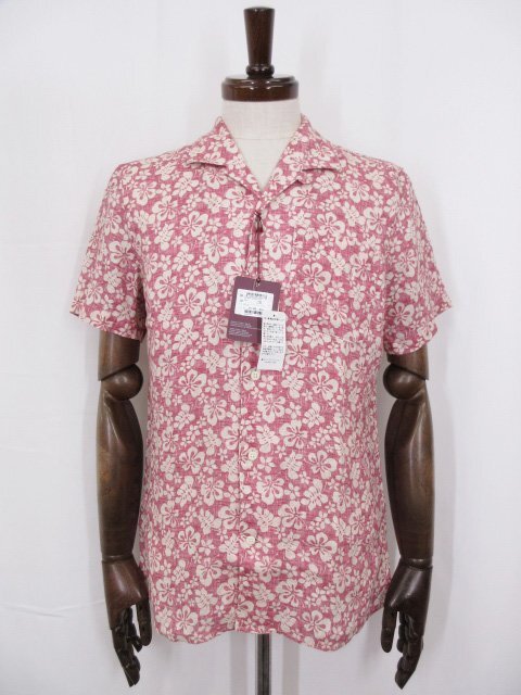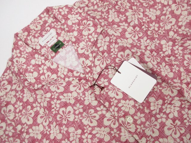 未使用【グランシャツ GLANSHIRT】SLOWEAR 5XJA00 G7048 200 定価45100円 麻100% 半袖 アロハシャツ(メンズ)size38 レッド系 ◇17GRS238◇