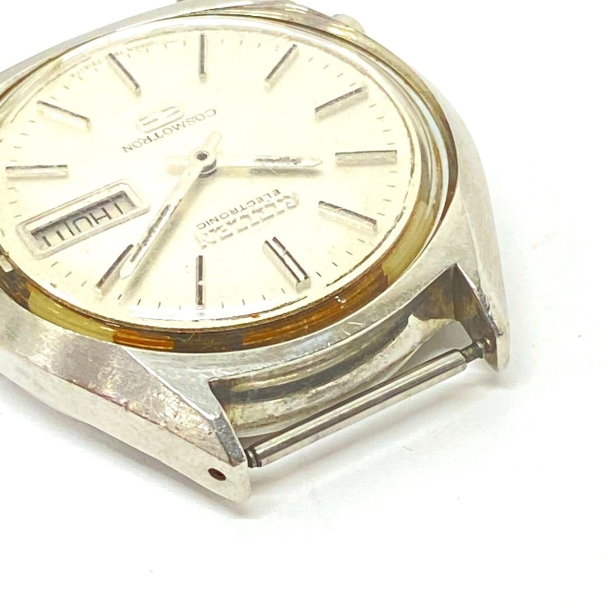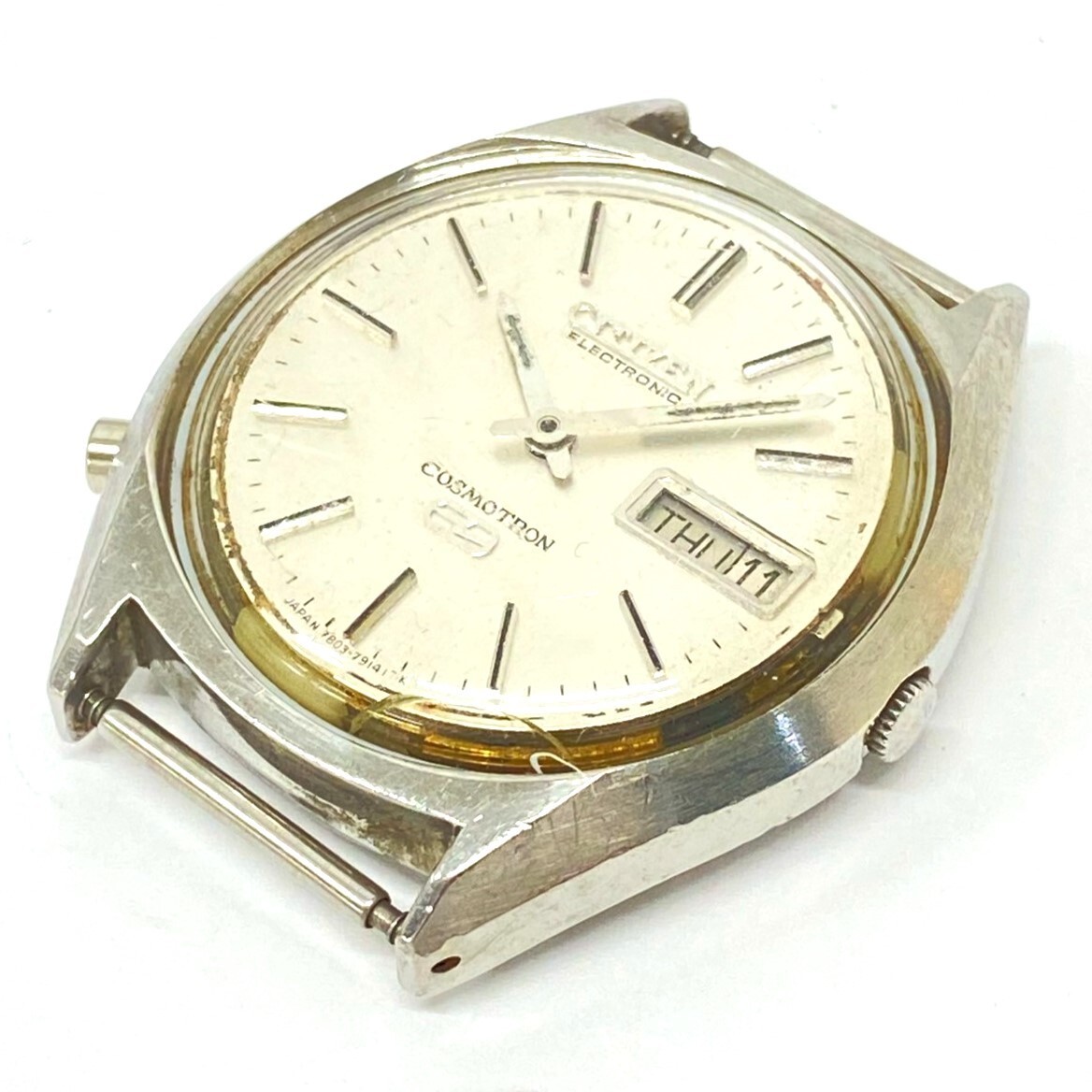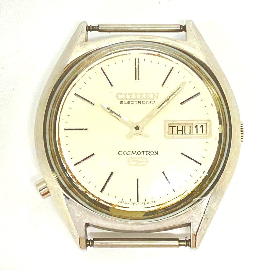 ♪ha4127-10 802 CITIZEN シチズン COSMOTRON コスモトロン ELECTRONIC 4-790634 銀文字盤 QUARTZ デイデイト メンズウォッチ 腕時計 不動