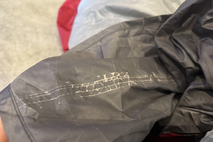 べたつき等の劣化はあまり感じられませんが、シームテープ劣化が見受けられます。
