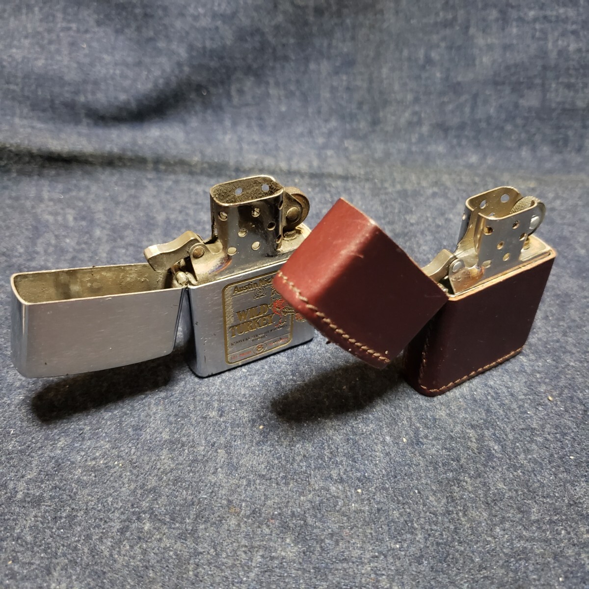 【1円スタート】ZIPPO 中古 2店セット/火花確認済み/ワイルドターキー、馬革巻 コードバン ブラウン