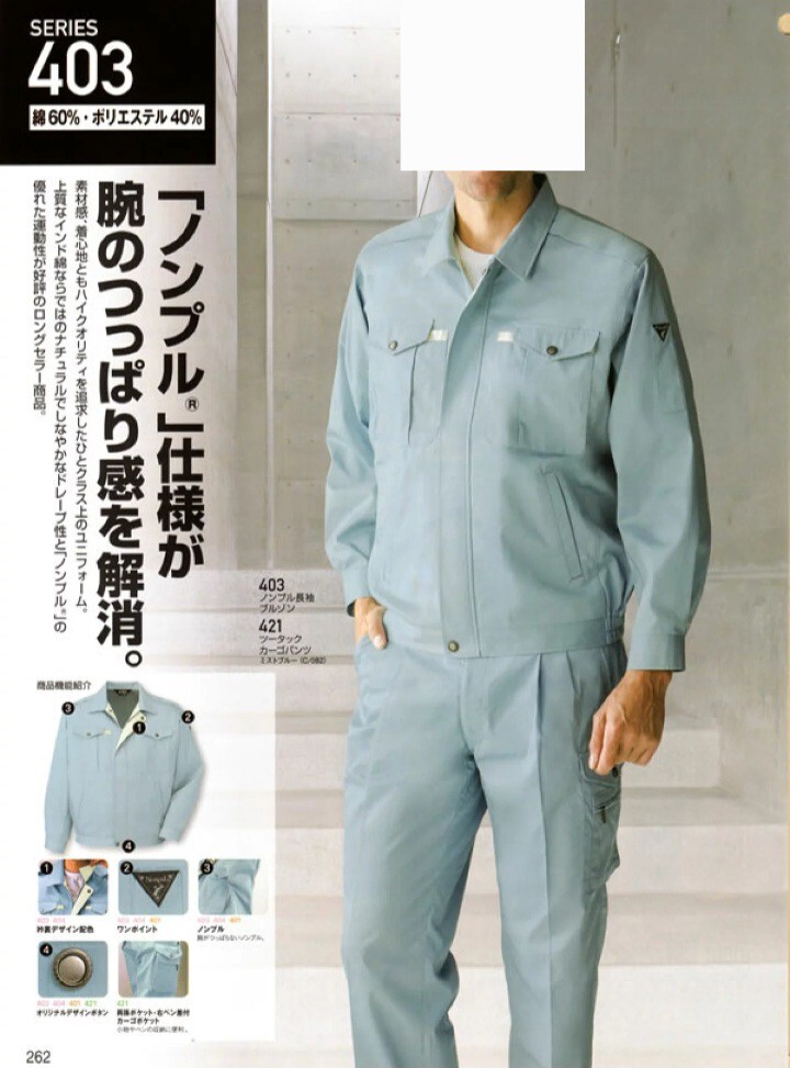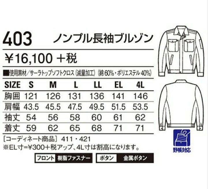 5030 自重堂 403|ノンプル長袖ブルゾン|アースグリーン|LLイズ|新品未使用|春夏|綿ポリ混紡|帯電防止|消臭|作業ジャンパー ジャンバー