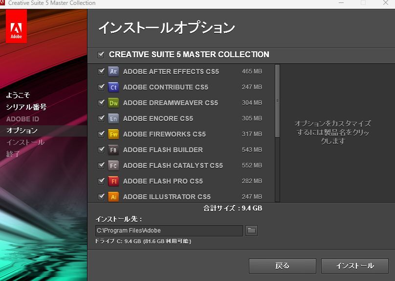 Adobe Creative Suite 5 Master Collection Windows版のインストーラーとなります