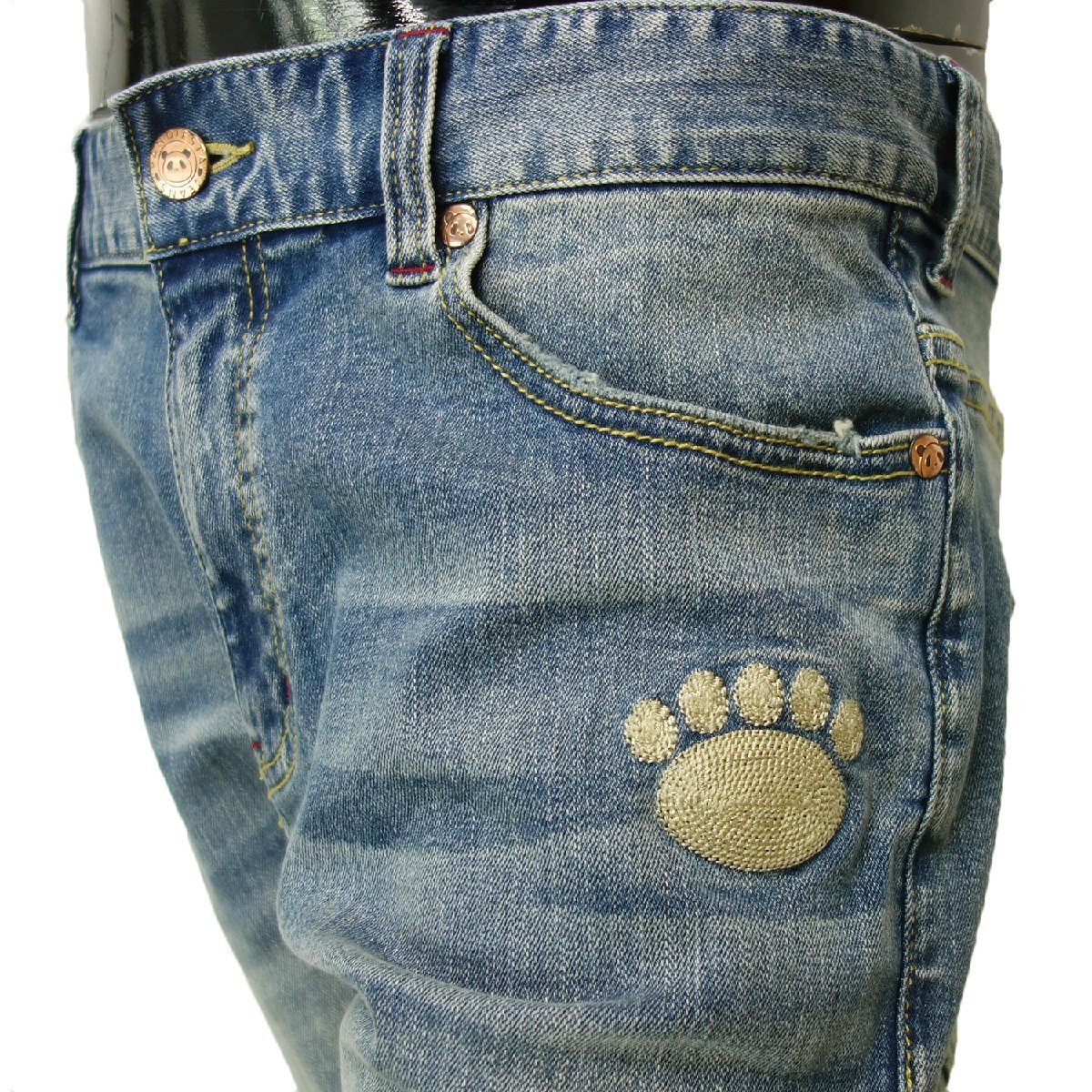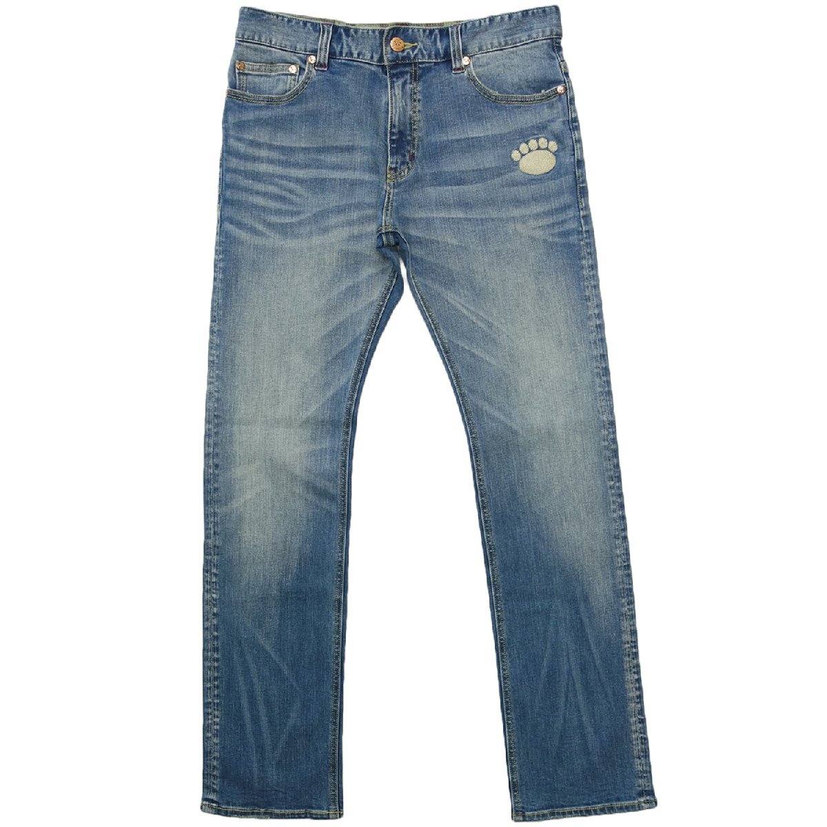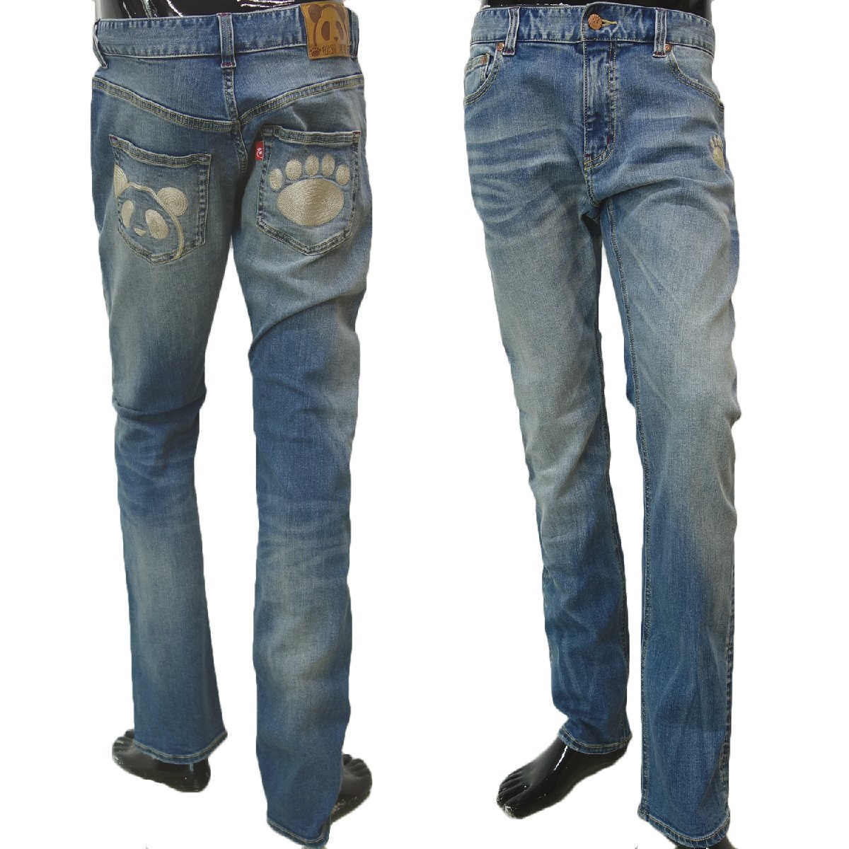 遊び心あふれる人気ブランド「PANDIESTA JAPAN(パンディエスタジャパン)」から、スリムストレートシルエットのデニムパンツが登場。ポリウレタン2%配合のストレッチデニム生地を採用し、細身ながらも脚部の可動域が広く、快適な穿き心地を実現。美脚効果と動きやすさを両立した1本です。リベットやフロントボタンには銅色のオリジナルボタンを使用し、ヒップポケットにはブランドの象徴であるパンダの顔と肉球をチェーン刺繍でデザイン。さらに腰裏やスレーキには迷彩柄生地を採用するなど、見えない部分にもこだわりが光ります。タイトすぎない絶妙なスリムストレートは、カジュアルからきれいめまで幅広くコーディネート可能。穿くだけで気分が上がる、オススメの大人デニムです。
