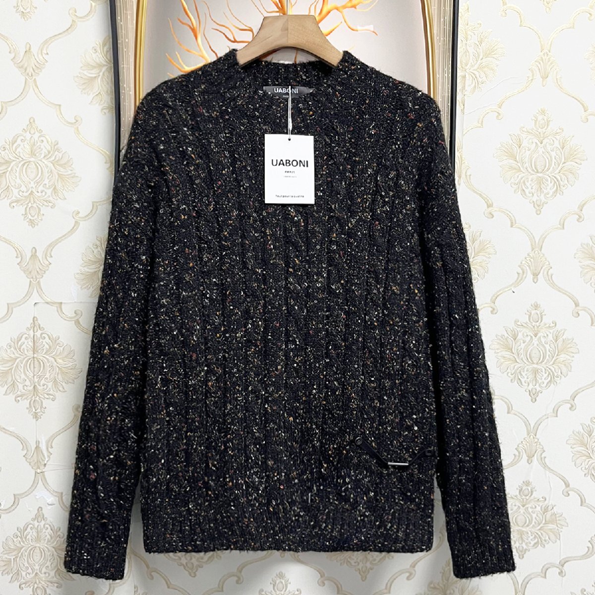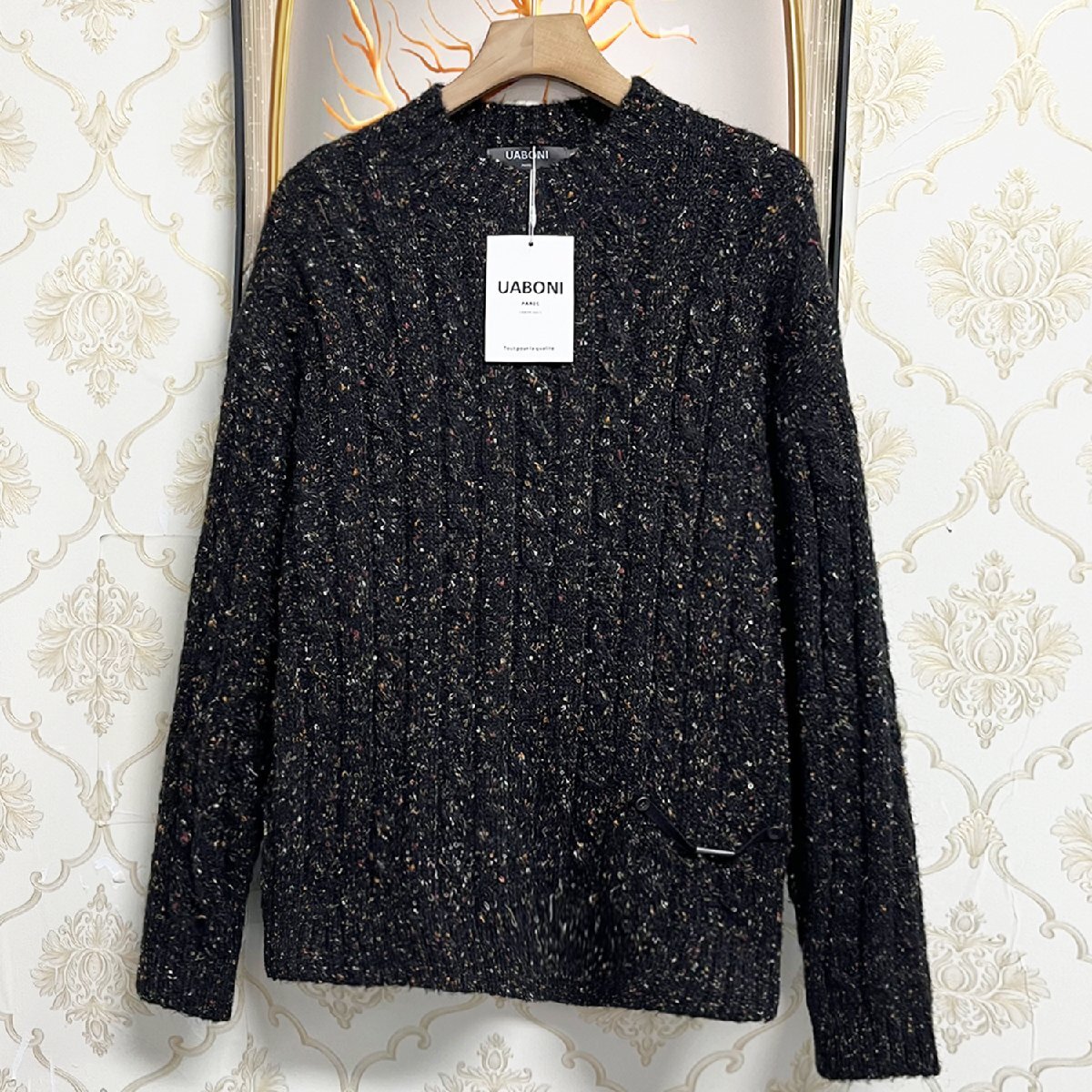 定番EU製&定価4万◆UABONI*Paris*セーター*ユアボニ*パリ発◆ウール混 ニット 保温 厚手 伸縮性 総柄 ゆったり 人気 トップス お出かけ 秋冬 M/46