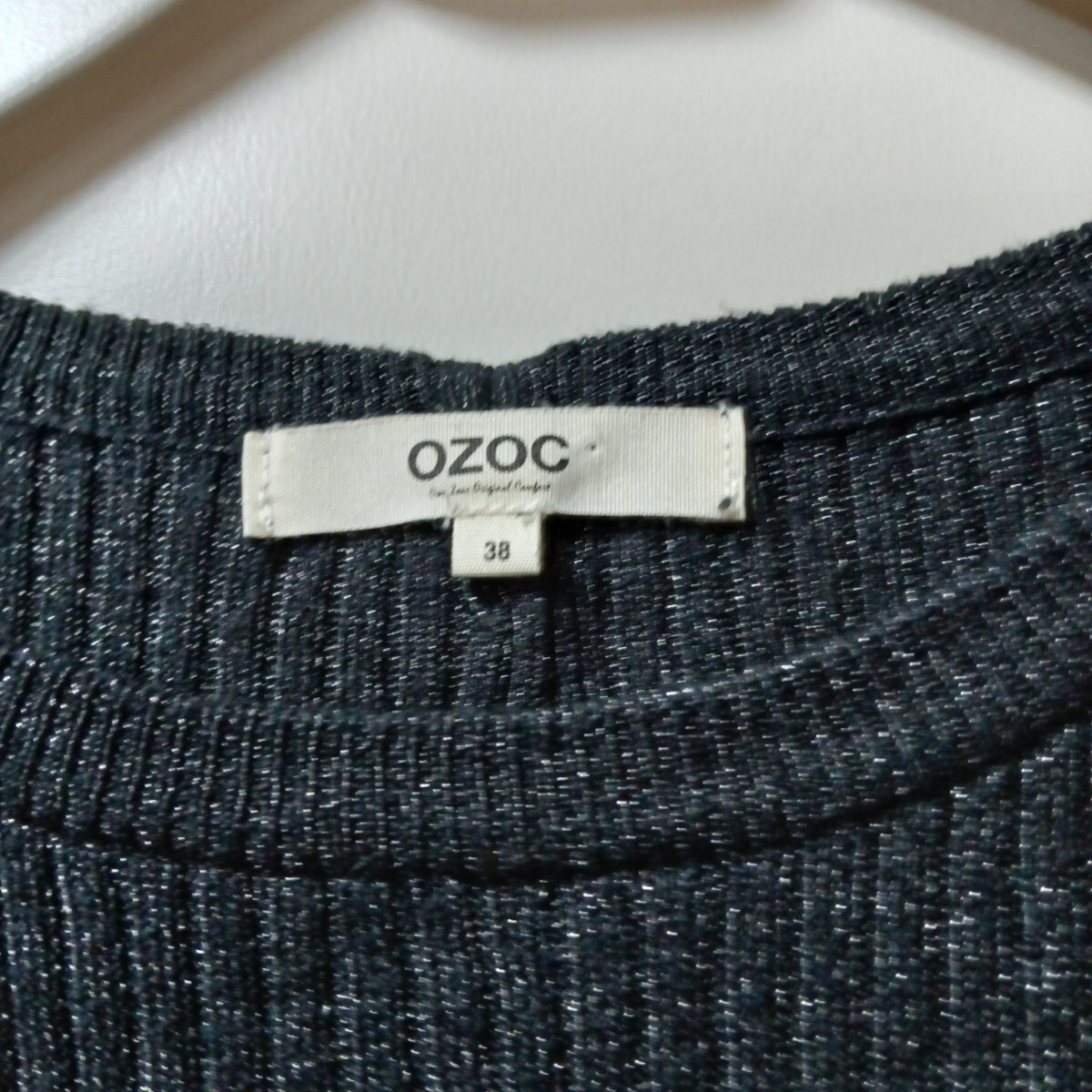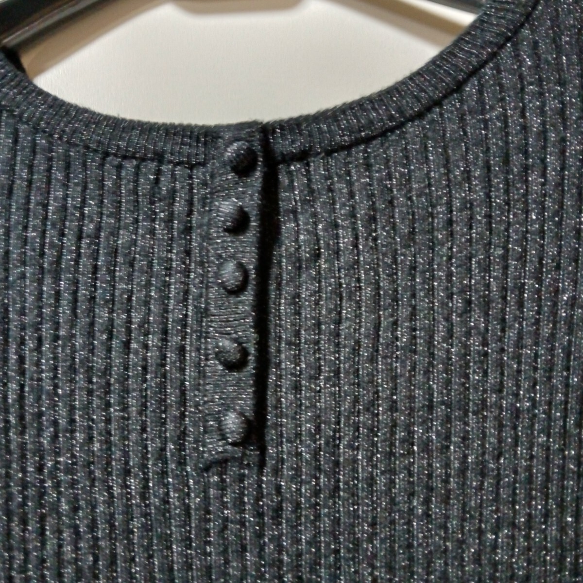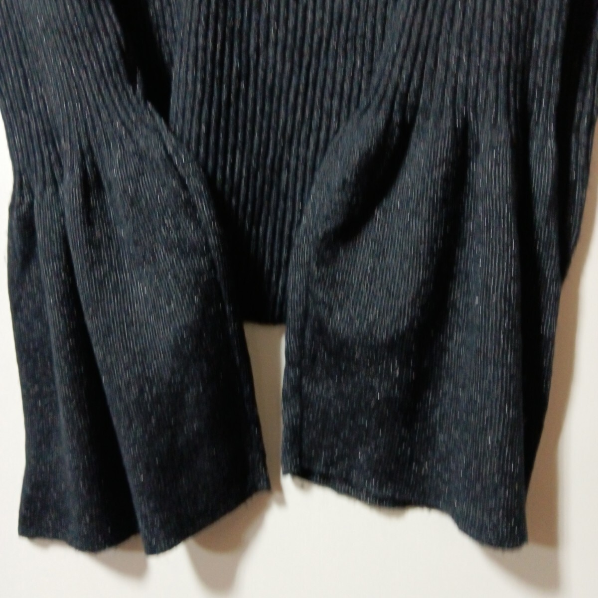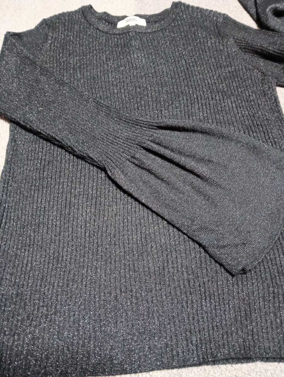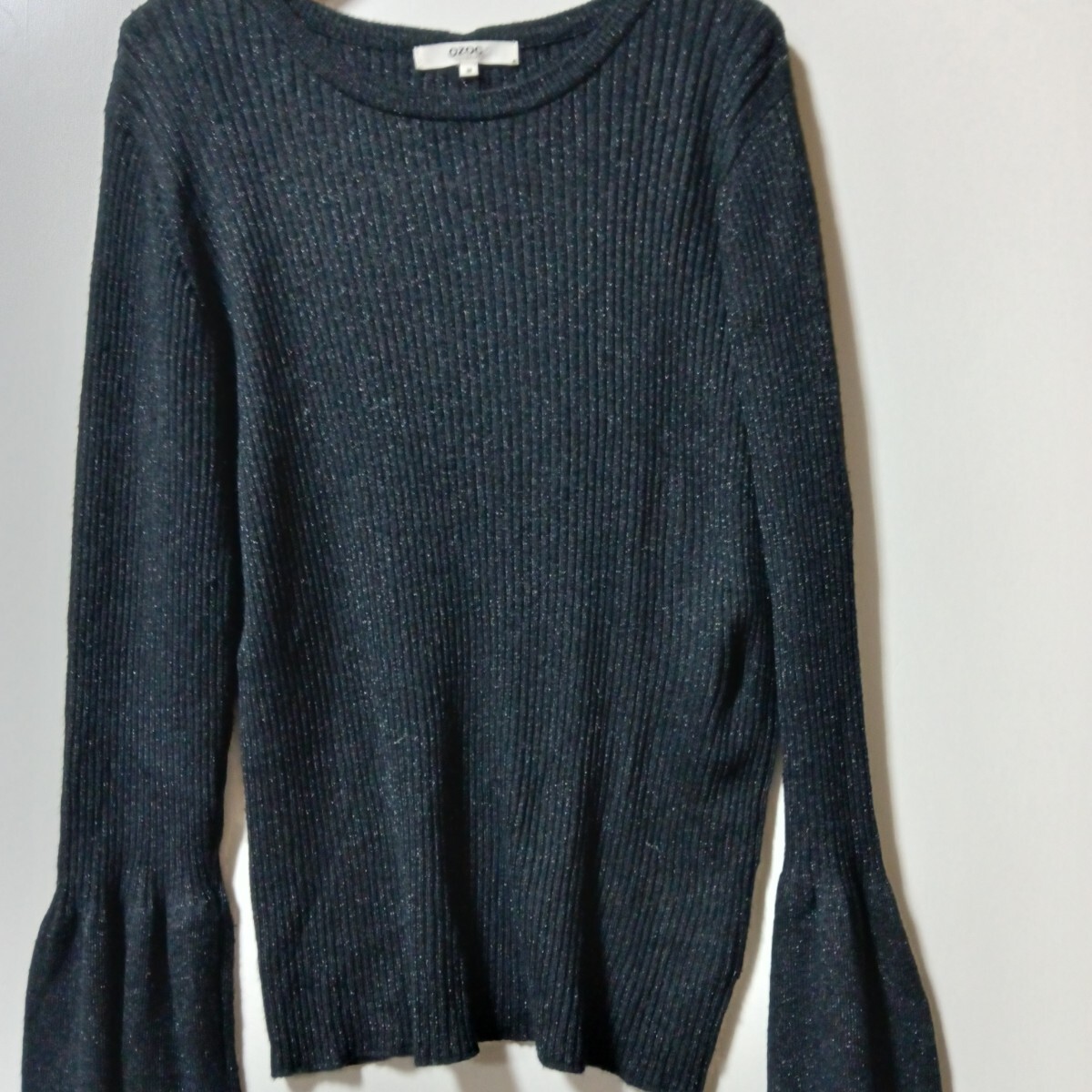 ラメ入りニットトップスです。袖口か広くなっています。少しラメ糸がはみ出ています。