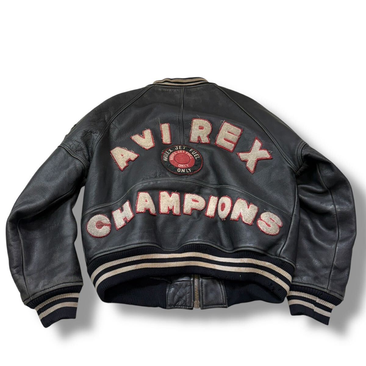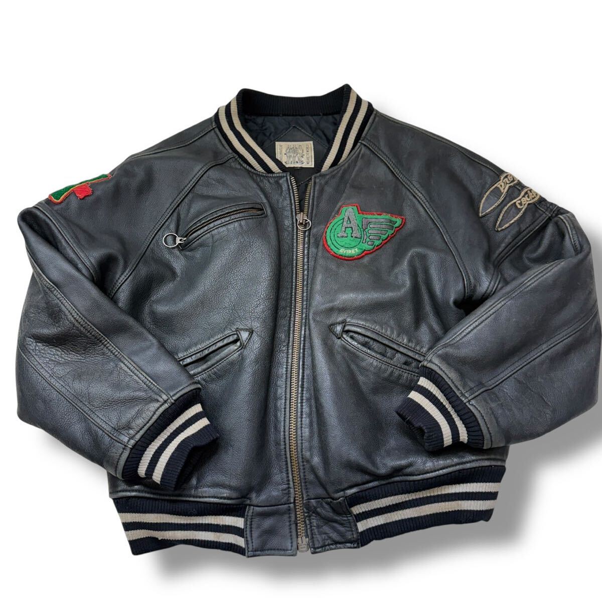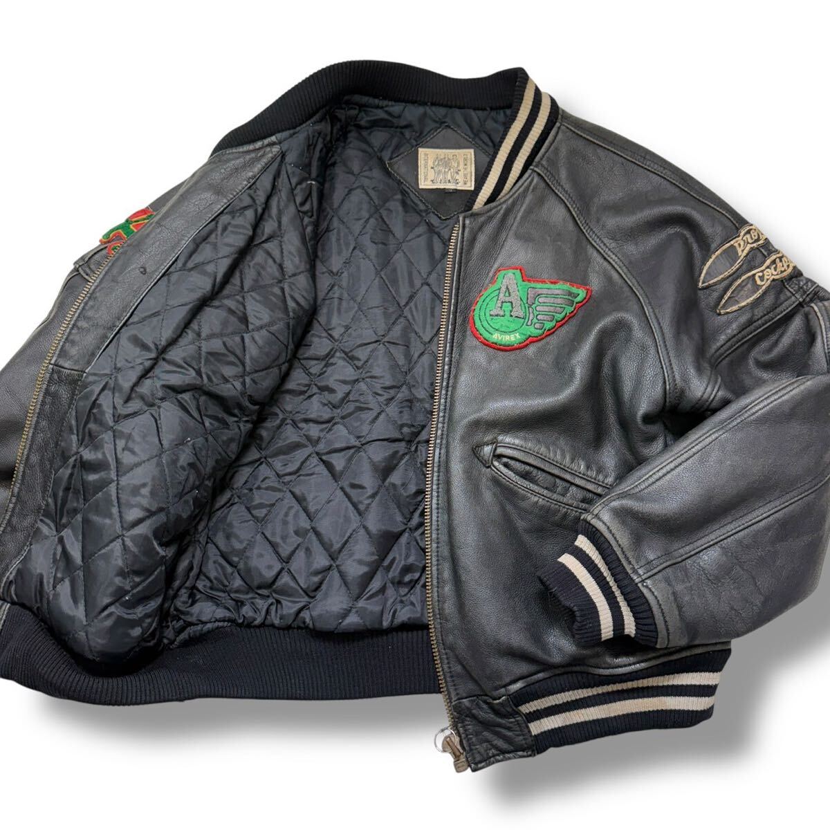 希少XL相当◎90s AVIREX アーチロゴ スタジャン アヴィレックス オールレザー 革ジャン ワッペン バーシティジャケット 黒 ブルゾン メンズ