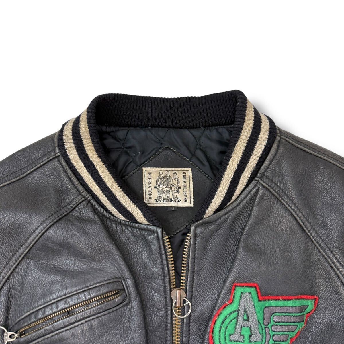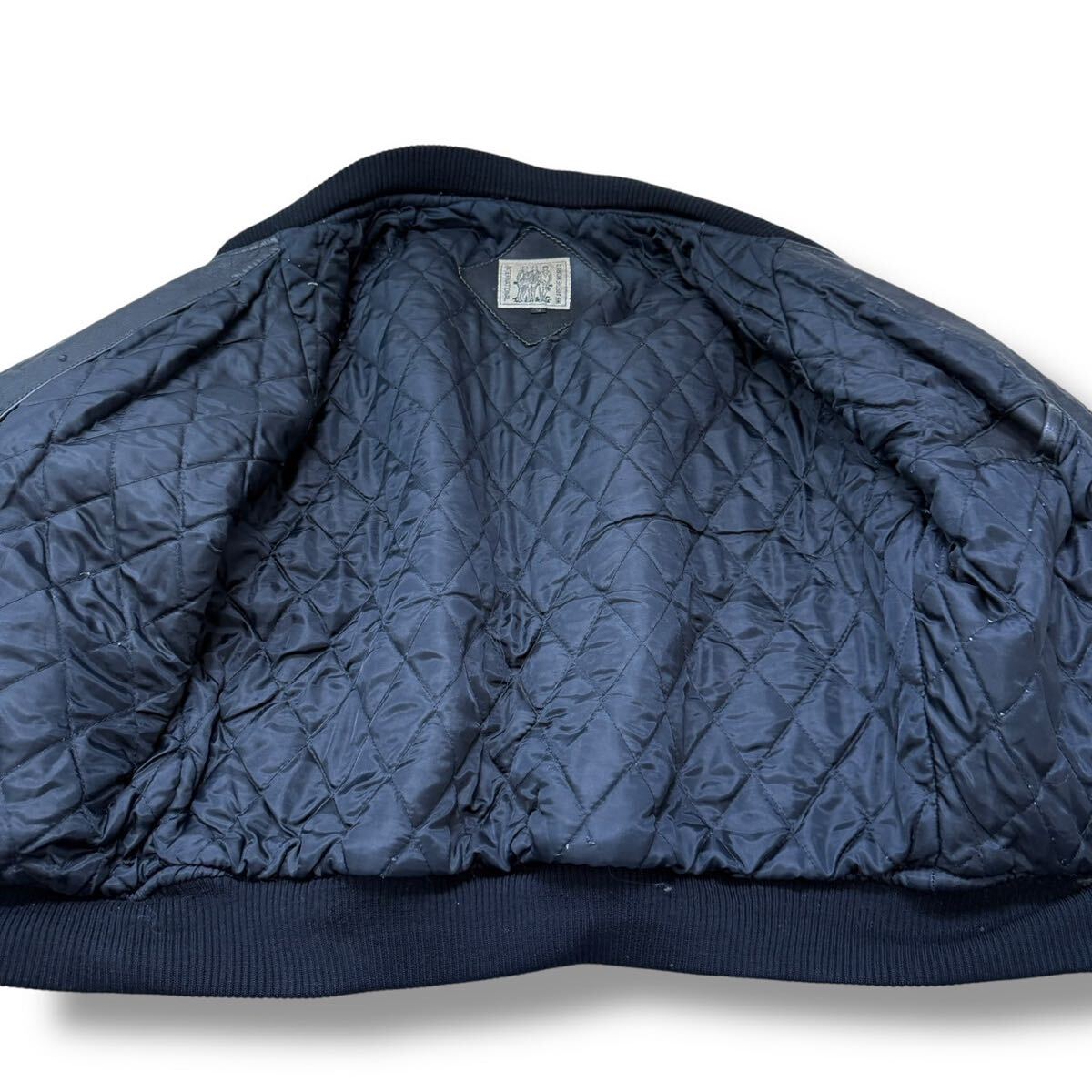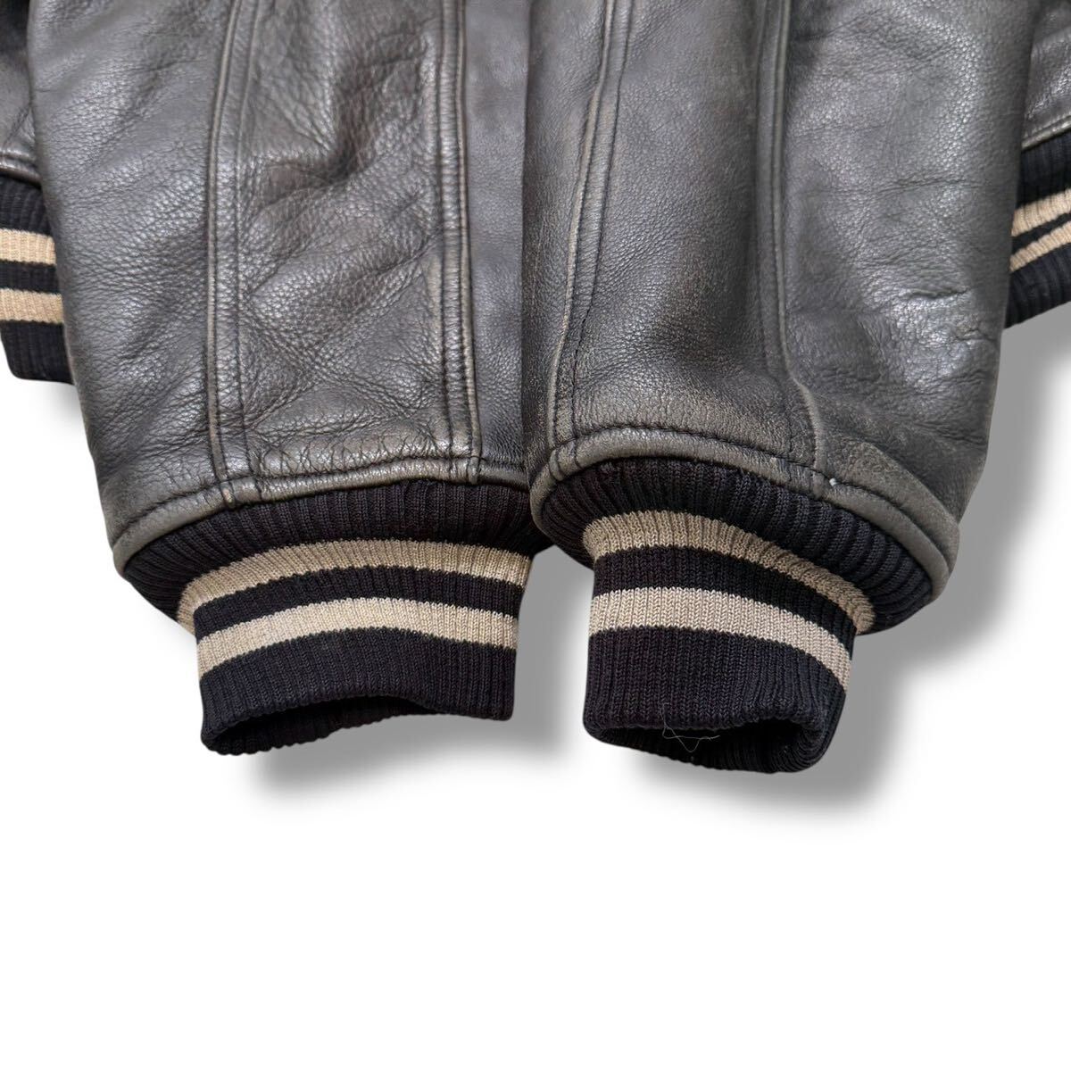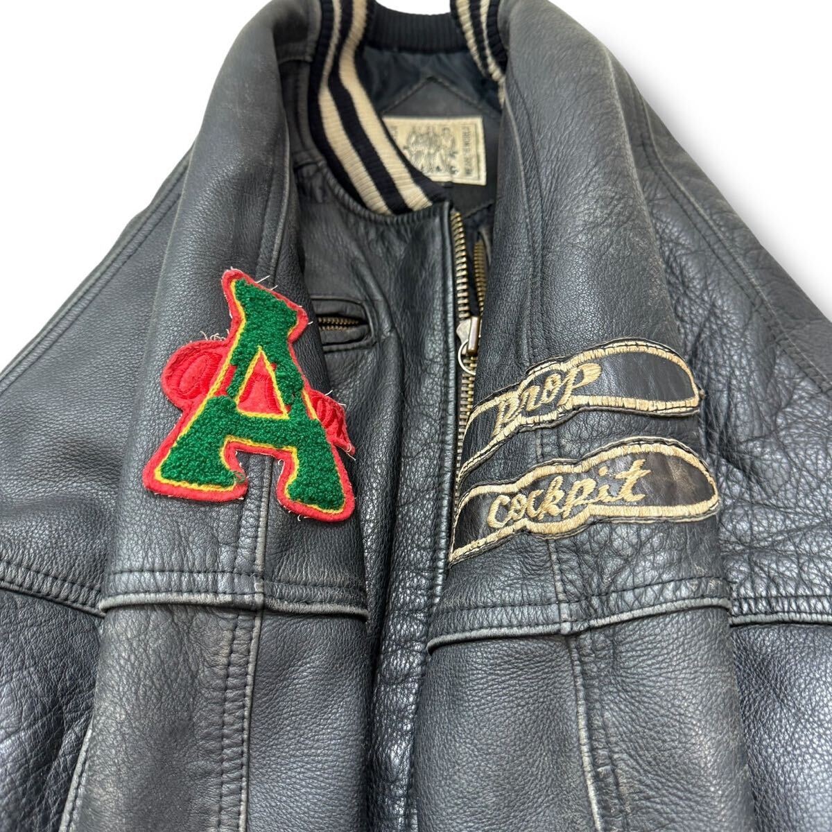 希少XL相当◎90s AVIREX アーチロゴ スタジャン アヴィレックス オールレザー 革ジャン ワッペン バーシティジャケット 黒 ブルゾン メンズ