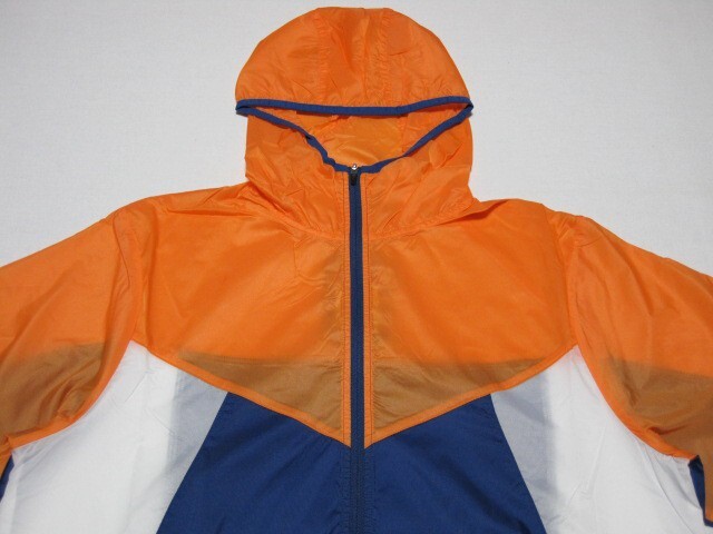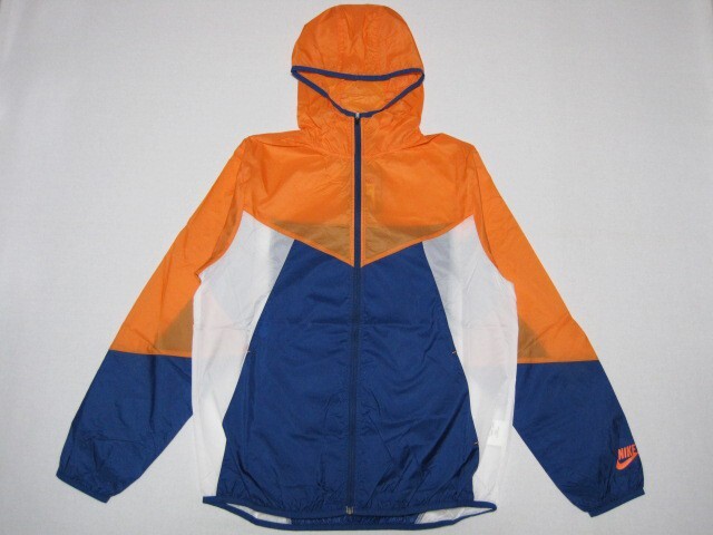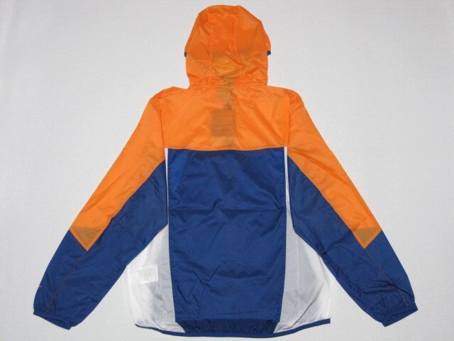 ナイキ L.I.S.(LIFE IS SPORT)のジャケットで、切り替えしのカラーブロックデザインが特徴的で、左袖にはブランドアイコンのスウッシュデザイン、素材は超軽量で丈夫なリップストップナイロンの「はっ水素材を採用、雨天時でもウエア内をドライに保ち、快適性向上を実現」した「WATER REPELLENT(ウォーターレペレント)」仕様のウインドブレーカー。