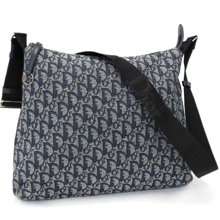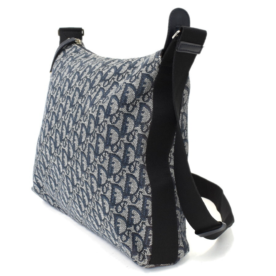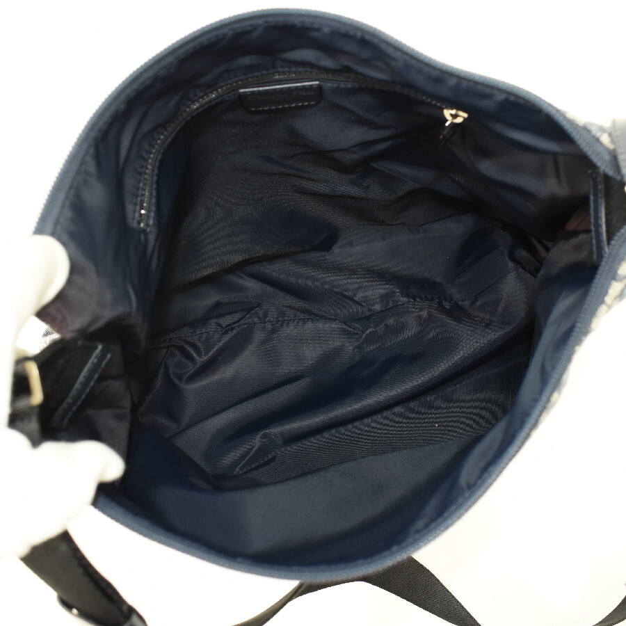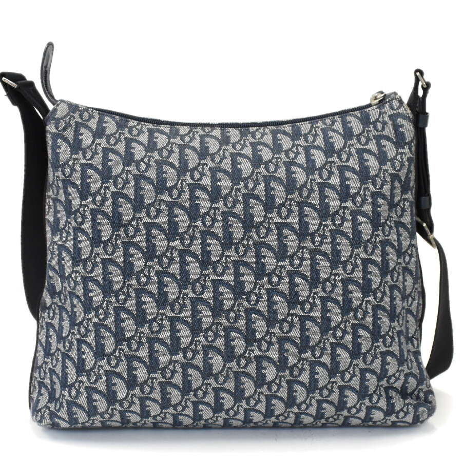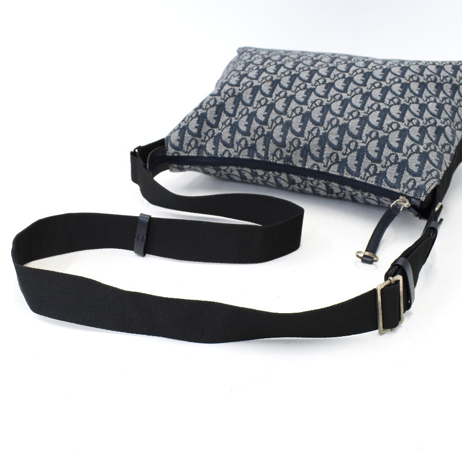 1円◎美品/Christian Dior/クリスチャンディオール/ショルダーバッグ/クロスボディ/トロッター/キャンバス/レザー/ネイビー◎E.Clg.aT-05