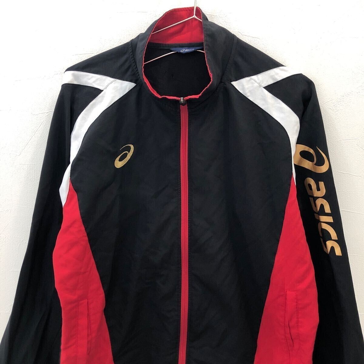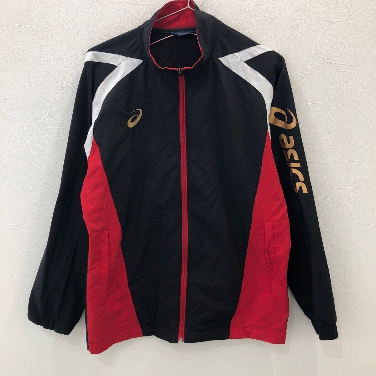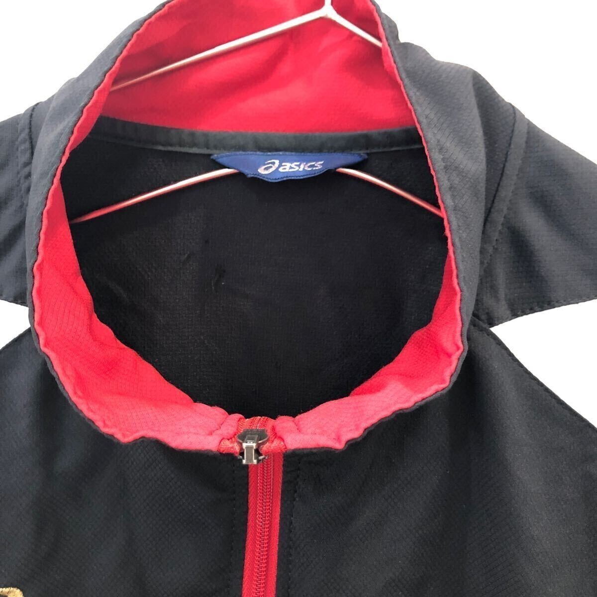WY463 アシックス 長袖ジップナイロンジャケット ブラック レッド メンズ S