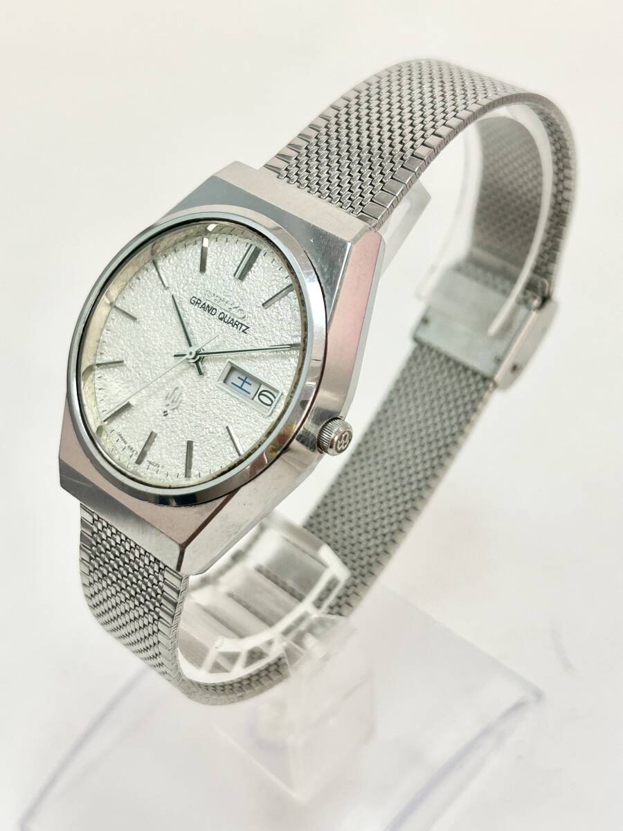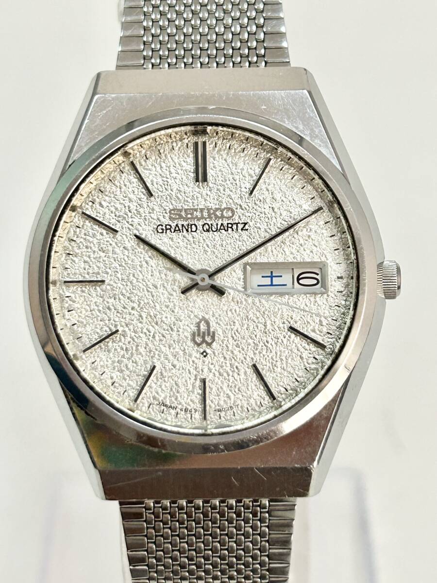 ML691【RUP】★1円~★ 稼動品 SEIKO セイコー GRAND QUARTZ グランドクォーツ 4843-8100 デイデイト シルバー 梨地文字盤 メンズ腕時計 | |||