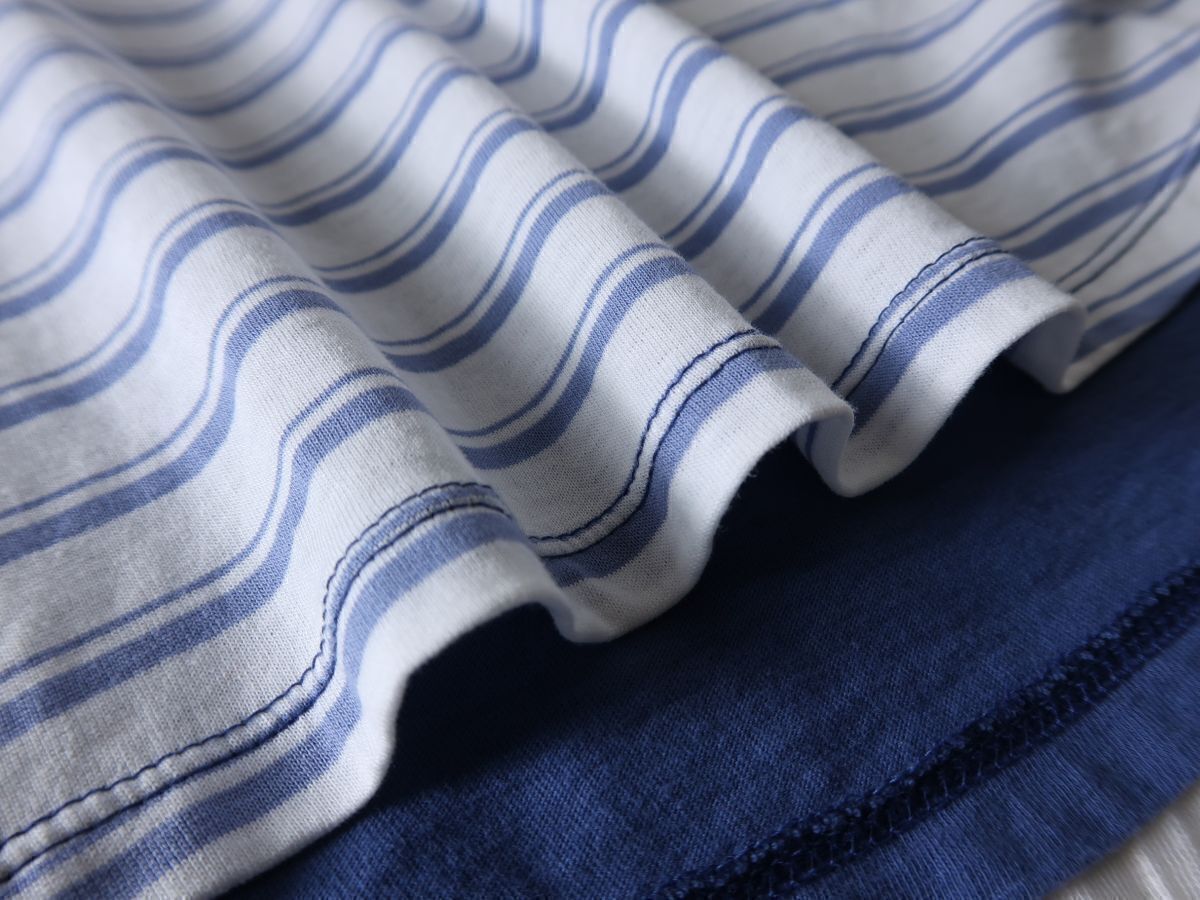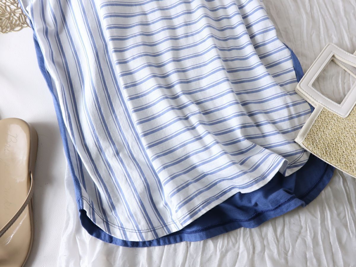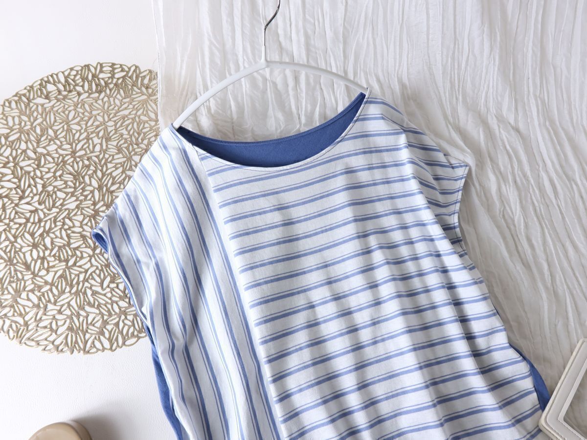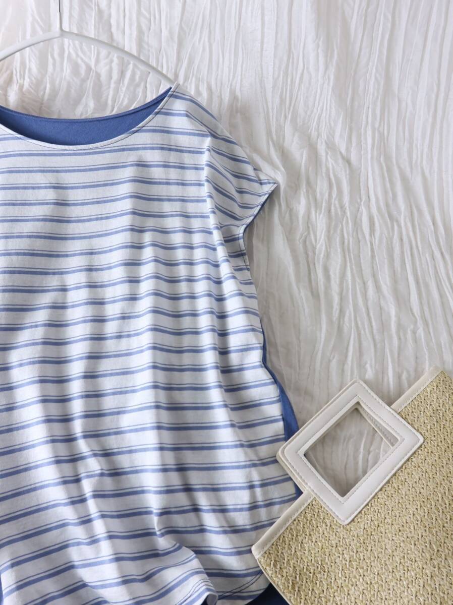 ノーリーズ NOLLEYS☆洗える 綿100% フレンチスリーブ ボーダー切替トップス 日本製☆M-B 3839
