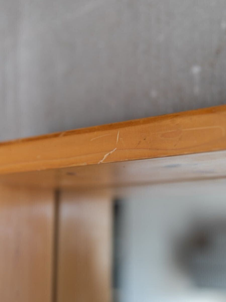 ミラー上部に使用している時にライトが当たってたと思われる2カ所変色が見られました。購入時にオリジナルの風合いを損ねない程度に補修はしてもらいました。