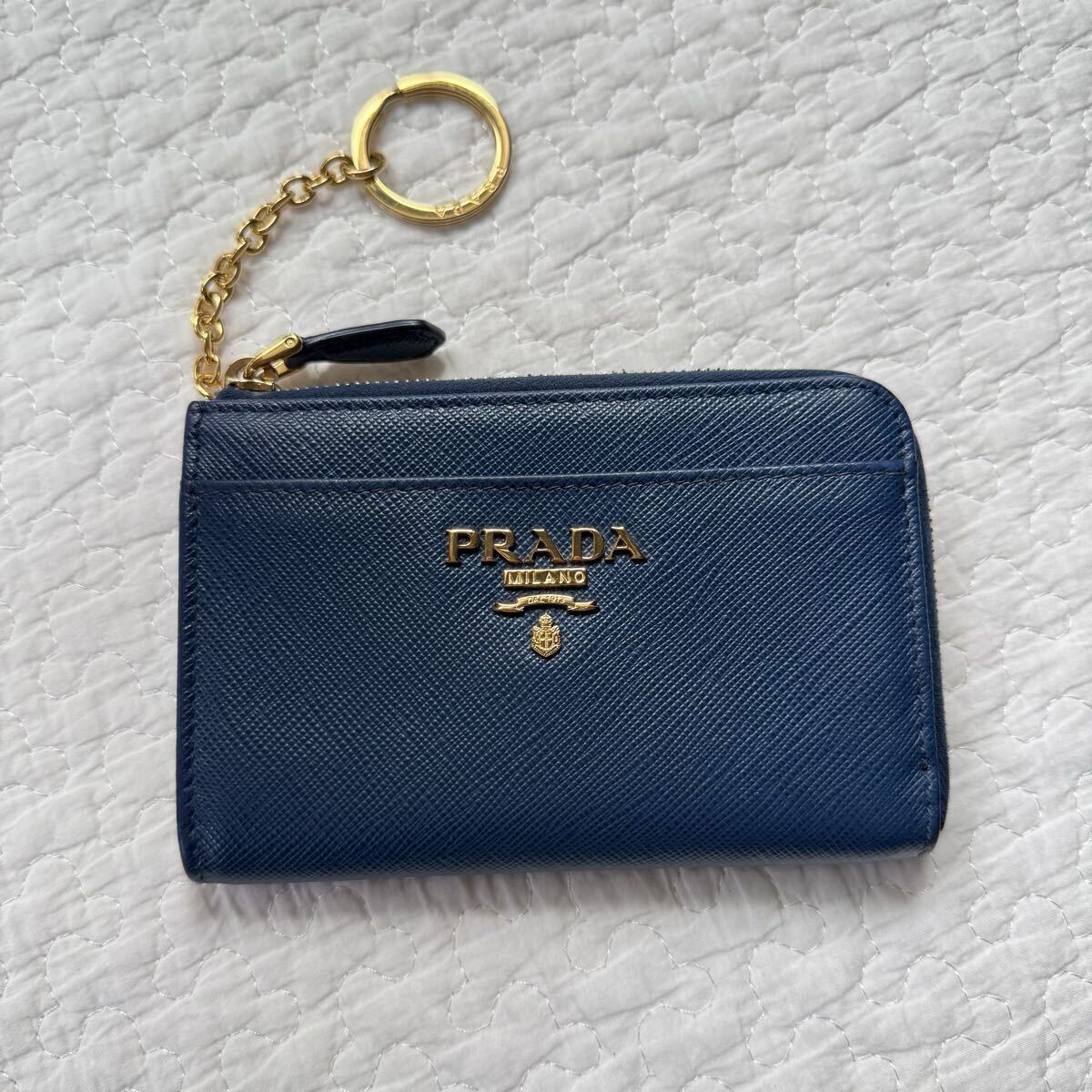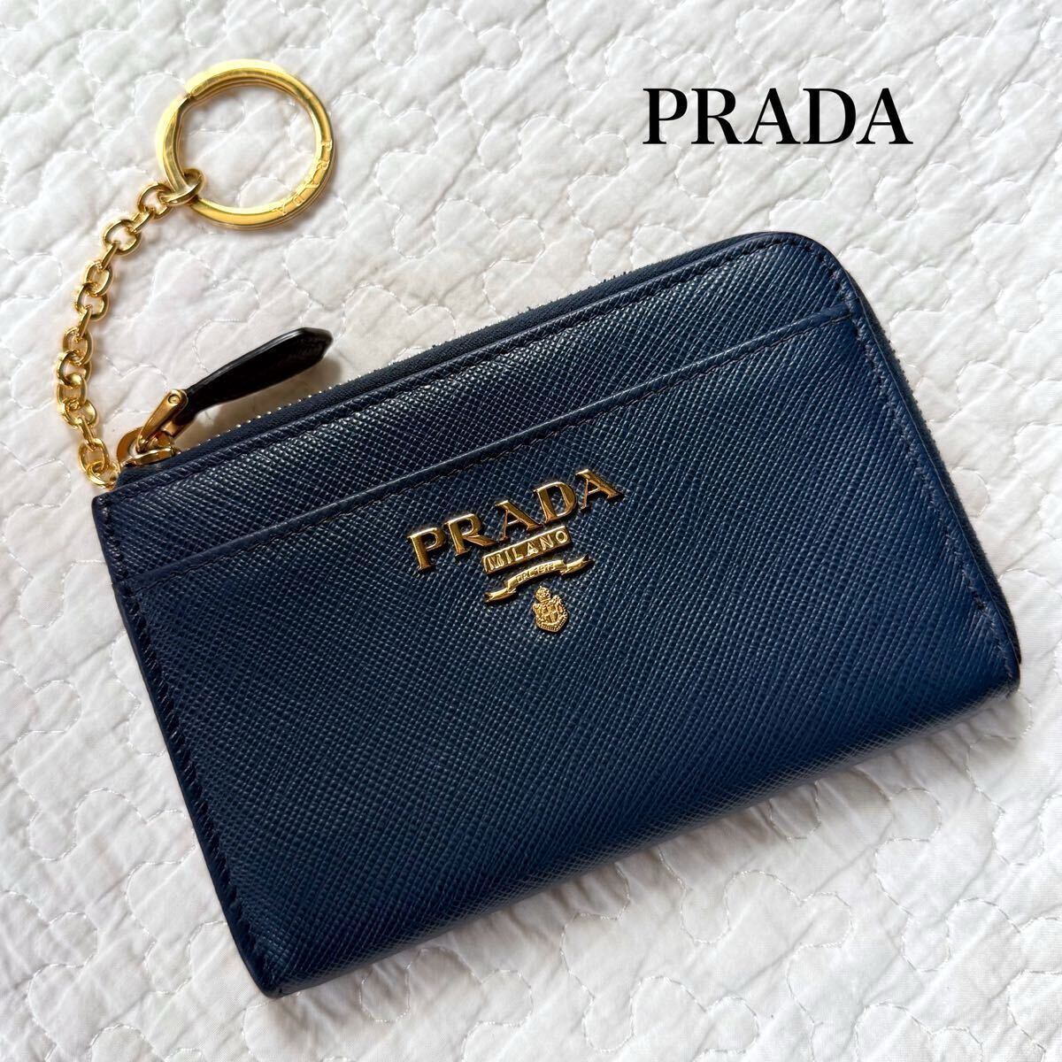 美品 PRADA プラダ サフィアーノレザー コインケース キーリング付き ネイビー ゴールド金具 1PP122 ブルエッテ