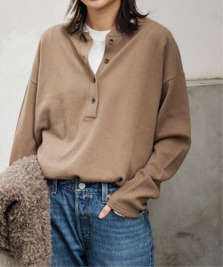 ハイゲージで肌触り良いカシミヤ混のオーバーサイズのニットプルオーバー。