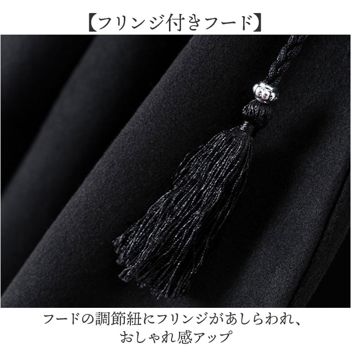 商品説明 | ・・【秋冬にぴったり】 ・シンプルでおしゃれなフリンジ付きコート。 ・【フリンジ付きフード】 ・フードの調節紐にフリンジがあしらわれ、おしゃれ感アップ ・【シンプルで合わせやすいデザイン】 ・無地のシンプルデザインで、どんなコーデにも馴染む。 ・【ゆったりシルエット】 ・ふわっとシルエットで体型カバーも実現。 ・【豊富なサイズ展開】 ・S、M、Lの3サイズ展開。 ・【秋冬の必須アイテム】 ・ロング丈で、秋冬の季節にぴったりなコート。 |