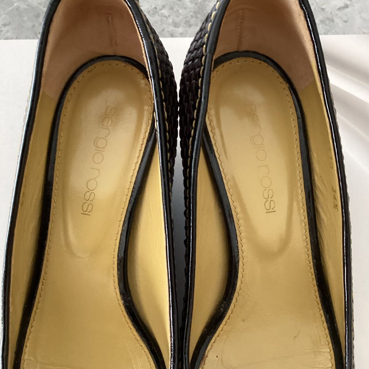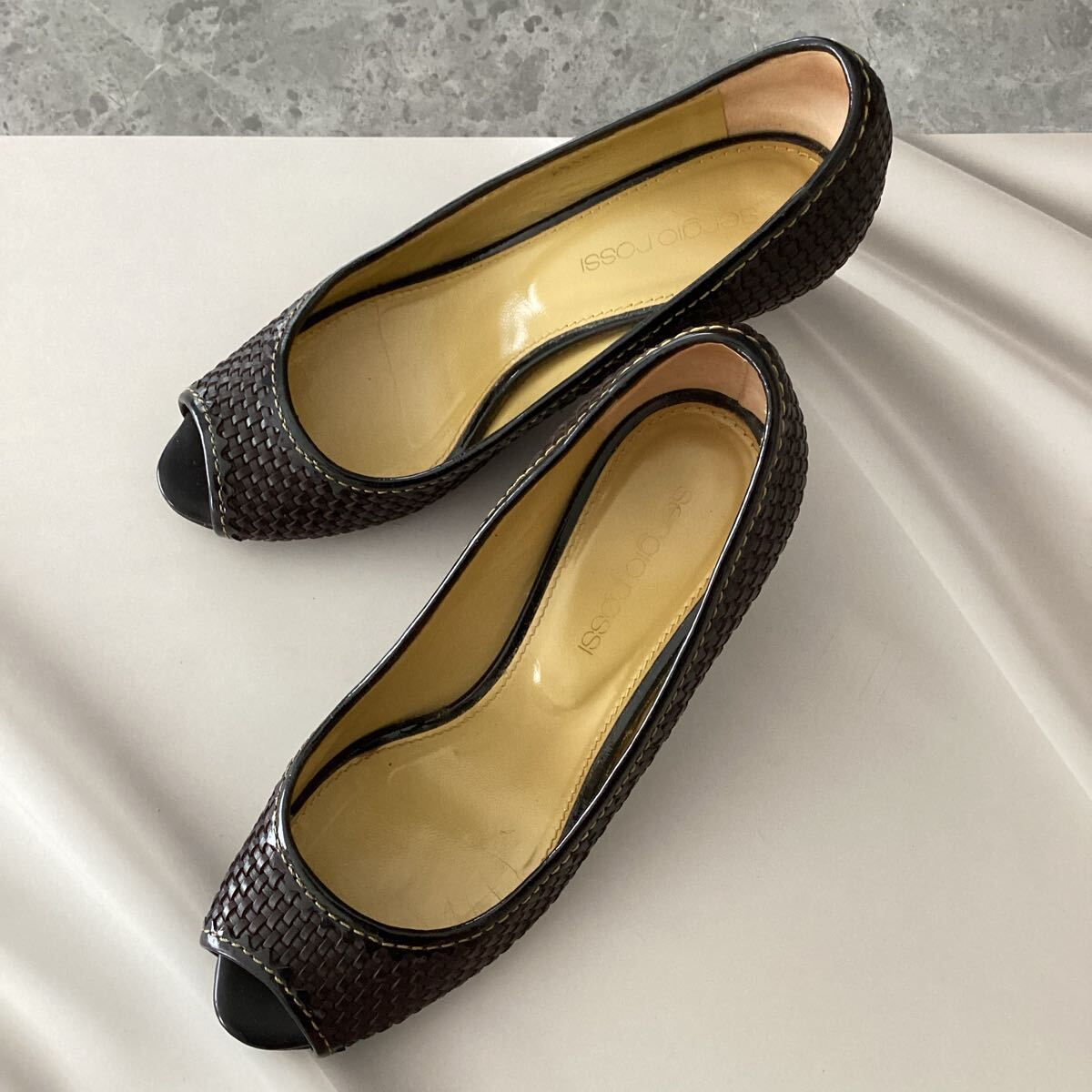 ■ セルジオロッシ オープントゥウェッジヒールパンプス ダークブラウン ■