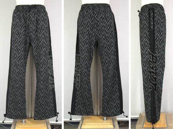 表地はやや薄手タイプとなります。 秋冬物となります。 【ドレープ感のあるポリエステル素材を使用】 ドレープ性のあるポリエステル素材を使用。 生地にはジャガードで幾何学柄を施しています。 【デザイン・ディティール・ジャガード柄/縦PGVIロゴ刺繍がお洒落】 上物は、フルジップタイプです。 ジャガード・幾何学柄の総柄タイプ。 左胸にPG等の刺繍をしっかりと施しています。 右胸には大きくPGVIの刺繍を施しています。 前合わせ部分、両脇り、袖上部に異素材をジョイント。 お腹部分にポケットを設けています。 袖口にはゴムを付けています。ウエスト部分はフラット仕様。 裏地あり。 パンツは、両脚サイド部分に異素材のライン配色を施しています。 左側に上物と同様のPVワッペンを付けています。 前身、右脚に上物と同様、PGVIの刺繍を施しています。 パンツのウェストはシャーリング、ゴム調節タイプなのでサイズは幅広く対応できます。(サイズ欄参照) 裾部分はこのままでも御着用できるようロープを付けてあります。 【スタイル・シルエット・フィット感】 ゆったりめのシルエットです。 インパクトのある、ロゴ刺繍モノです。 【お洗濯】 手洗いできるウオッシャブルタイプで、お洗濯もラクラクです。 |