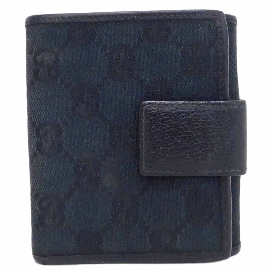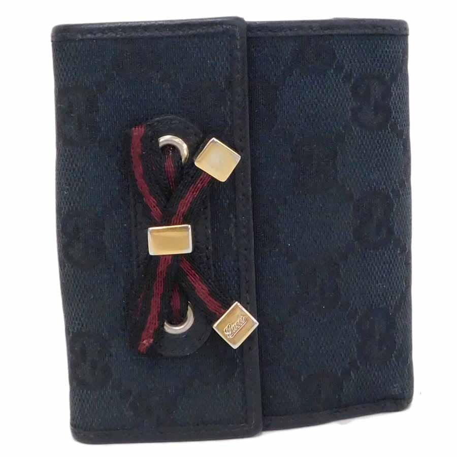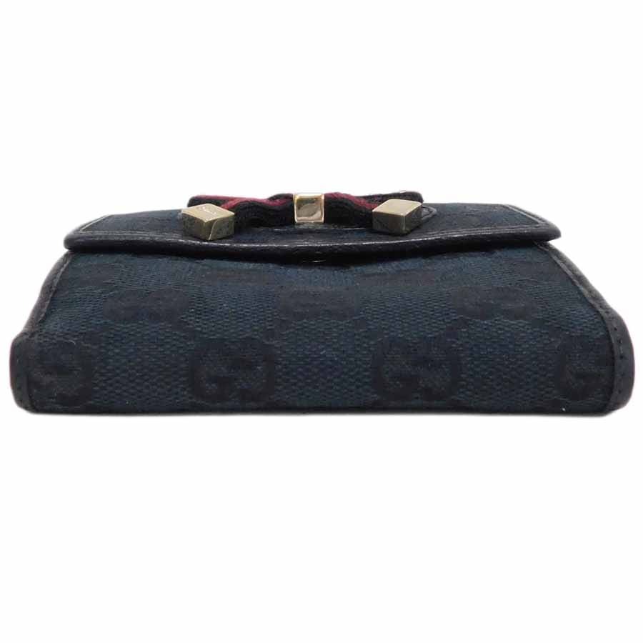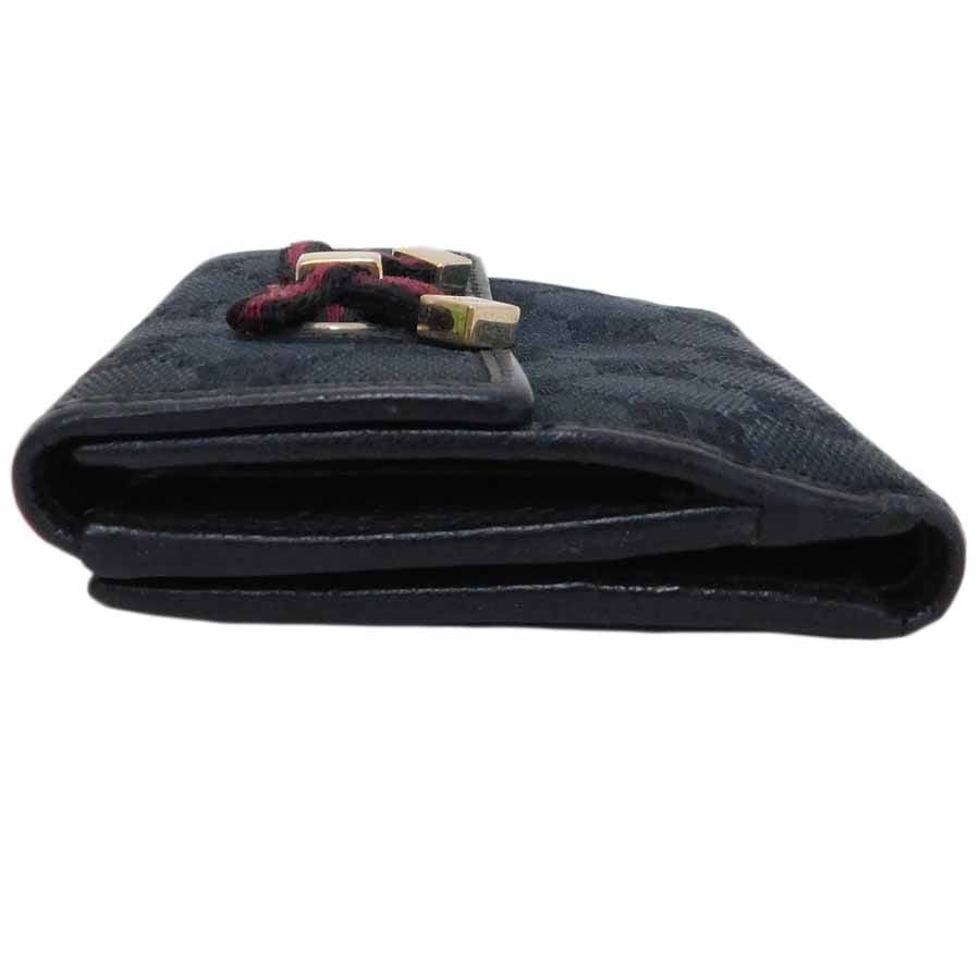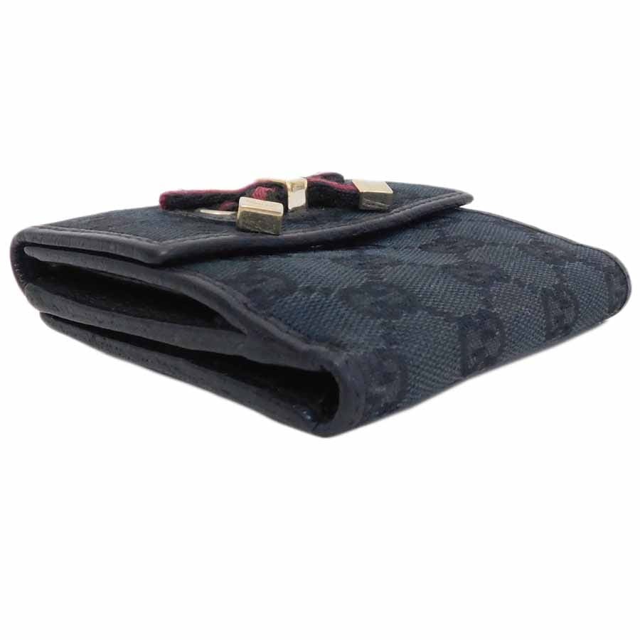 1円■ 美品/グッチ/二つ折り財布/ブラック系/キャンバス×レザー/GGキャンバス/リボン/GUCCI ■E.Beo.pS-19[中古]
