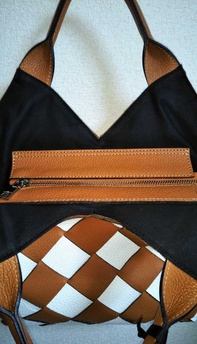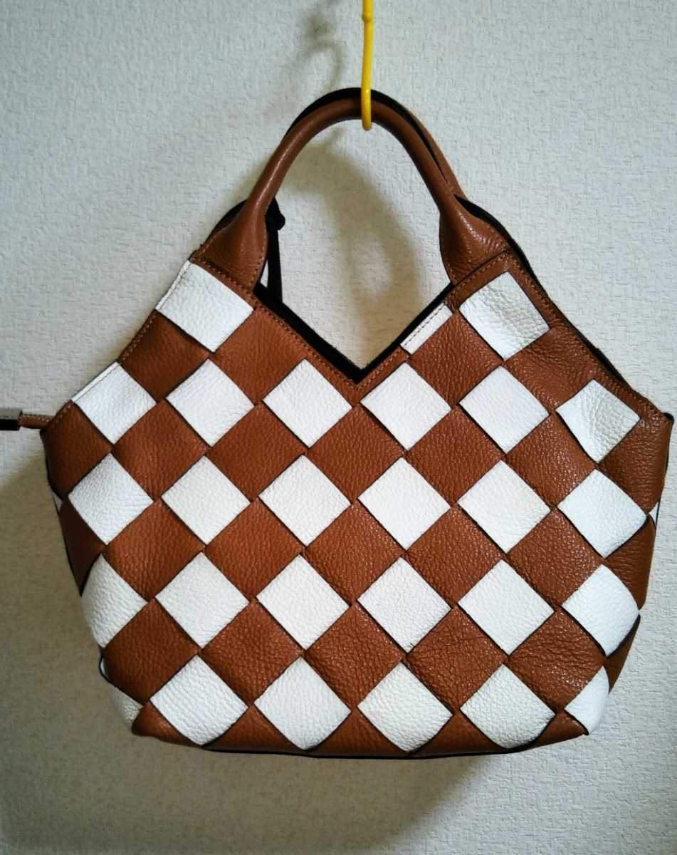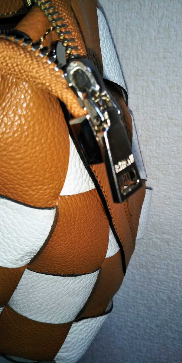 牛革の編み込みバッグで、同素材のショルダーベルトが付属します。