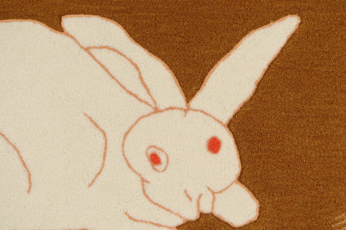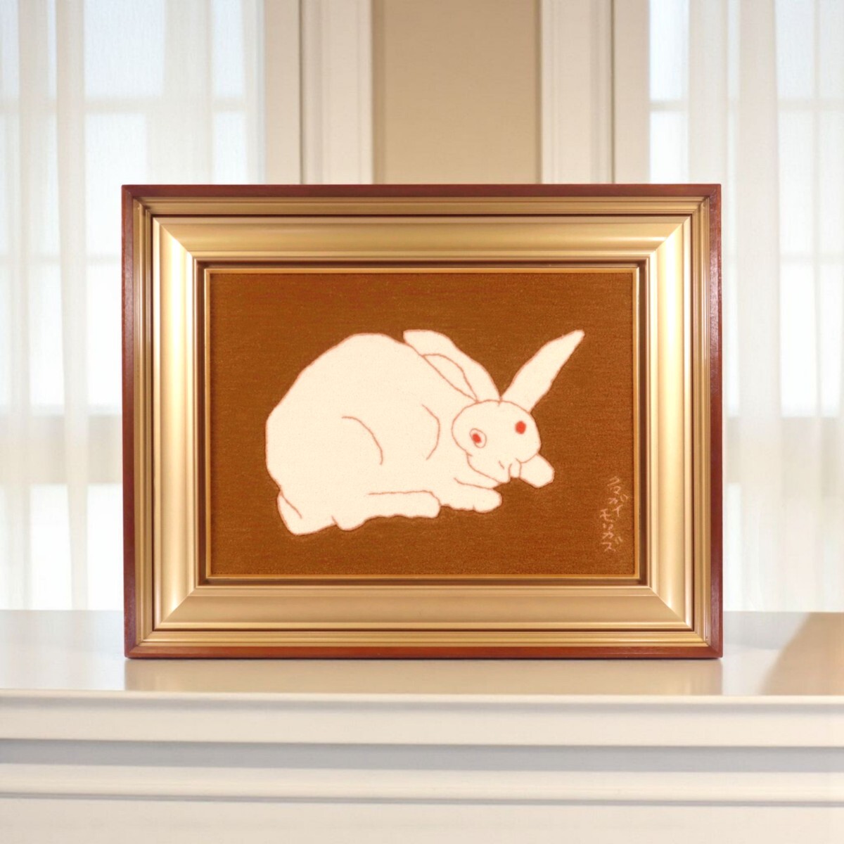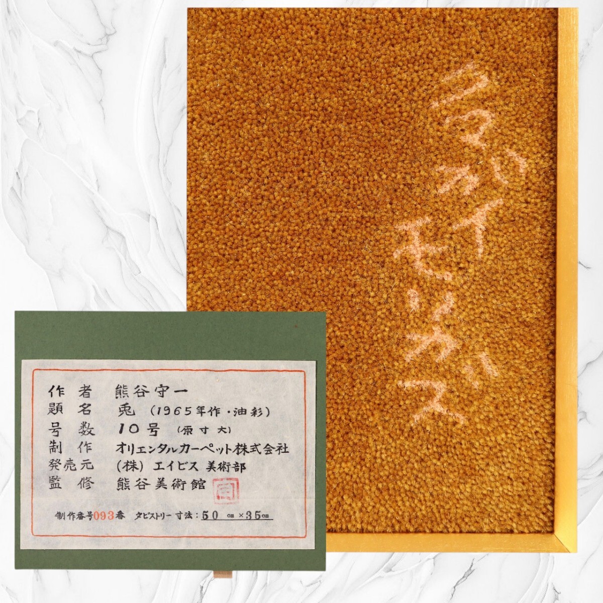 熊谷守一 織画「兎」画寸 49×35.5cm オリエンタルカーペット製 極端なまでに単純化した形態それを囲む赤い輪郭線に平面的な画面構成 11508