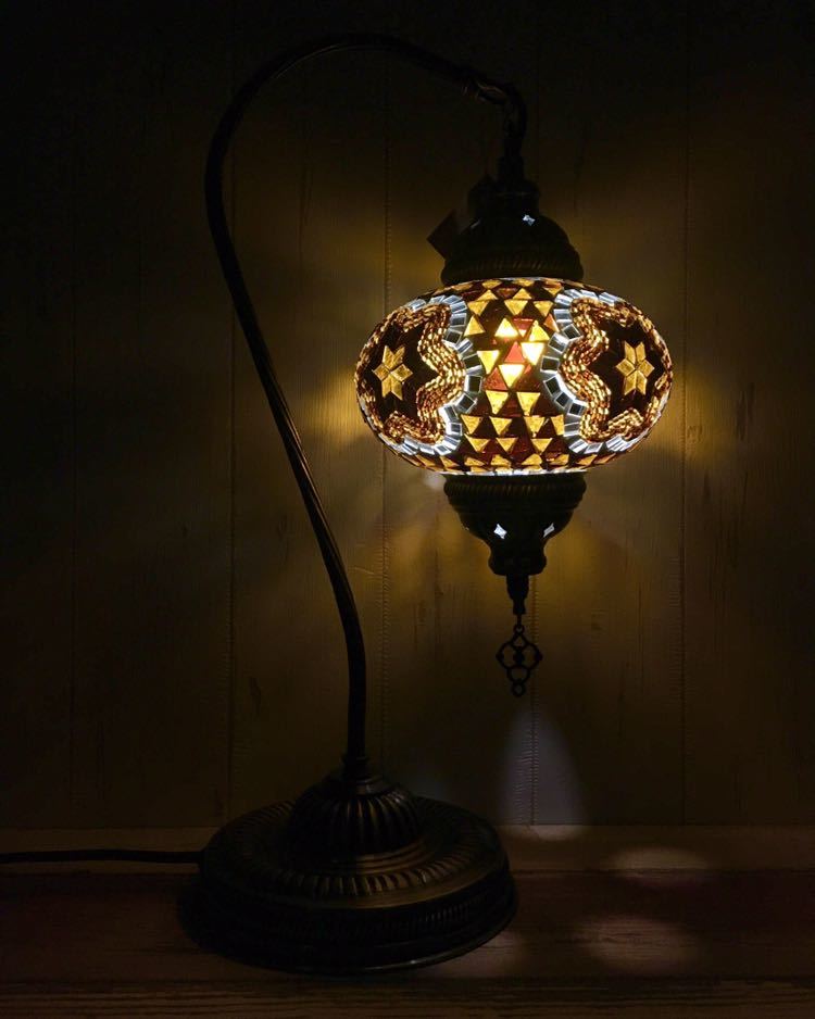 元々ランプに付いていたトルコ製の電球を使うと電圧の関係で壊れてしまうので、電球を日本製LED電球に付け替えてあります。