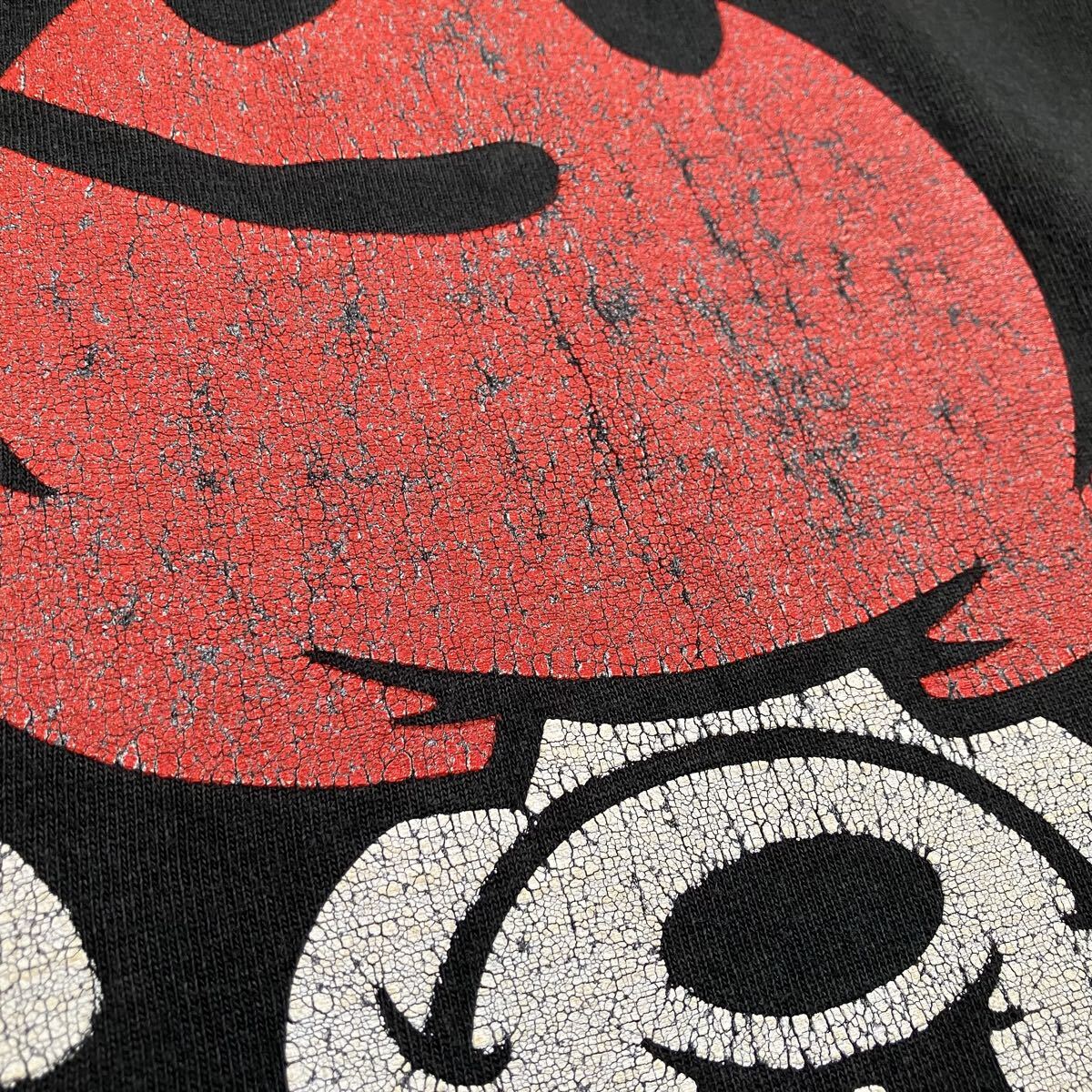特長: 袖、裾共にシングルステッチ!全体的なフェード、プリントのクラック等ありますが雰囲気のいい一枚!