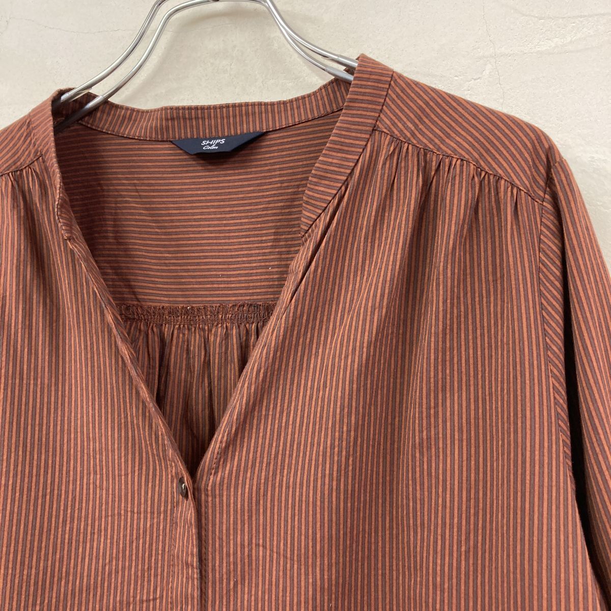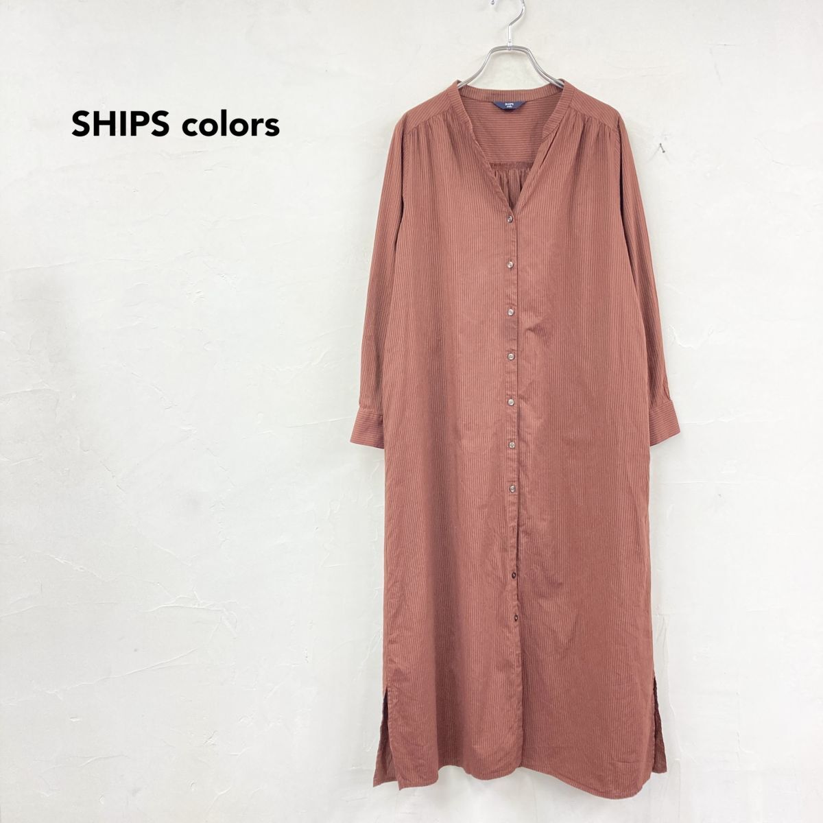 こちらシップスカラーズのマルチストライプ長袖シャツワンピースです。