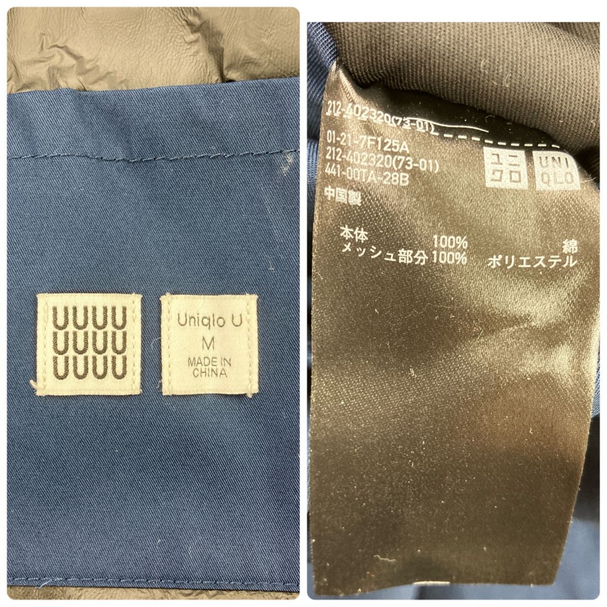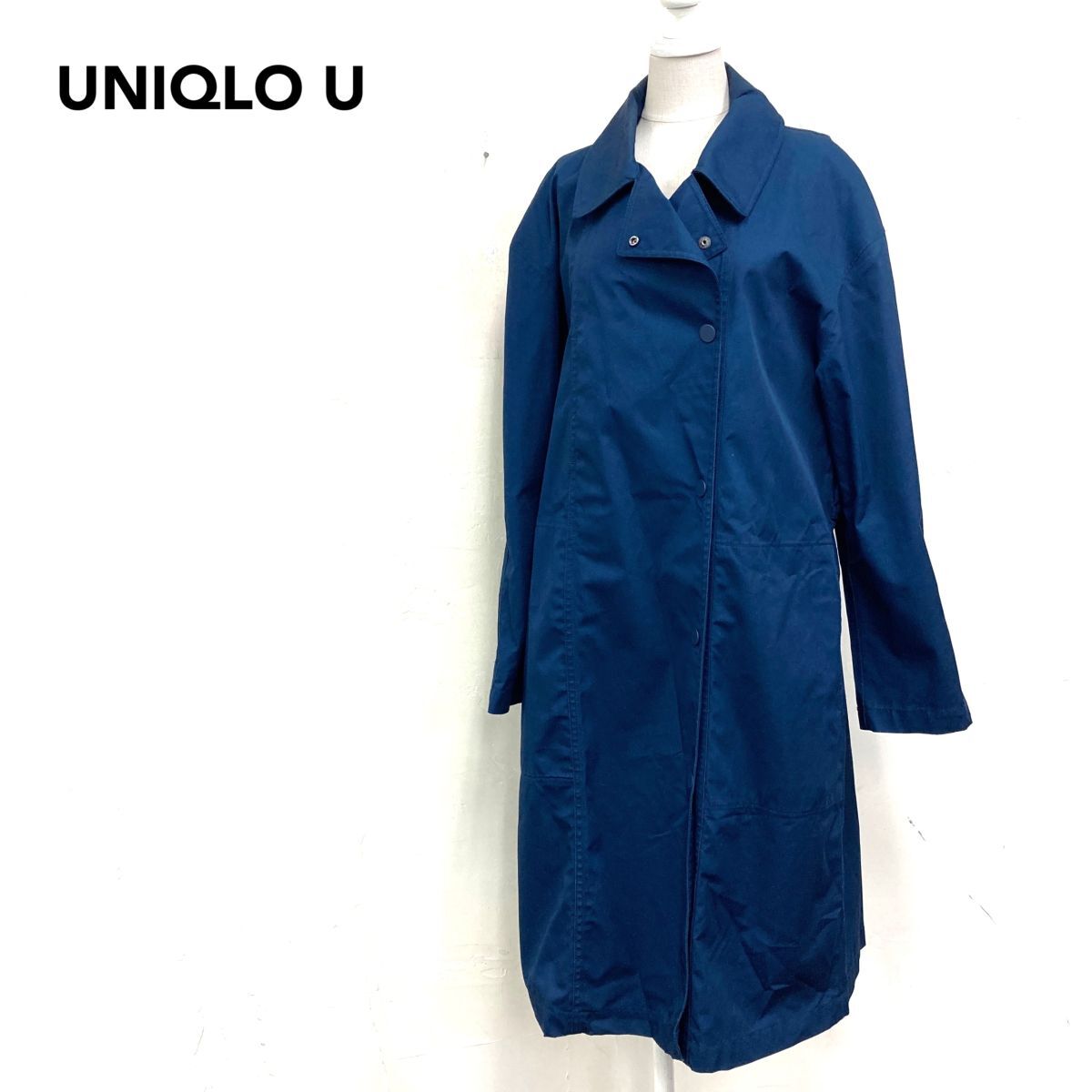 2K2785-W◆UNIQLO U ユニクロ ユー ステンカラー コート シンプル 無地 メンズ◆size:M ネイビー系 コットン 綿