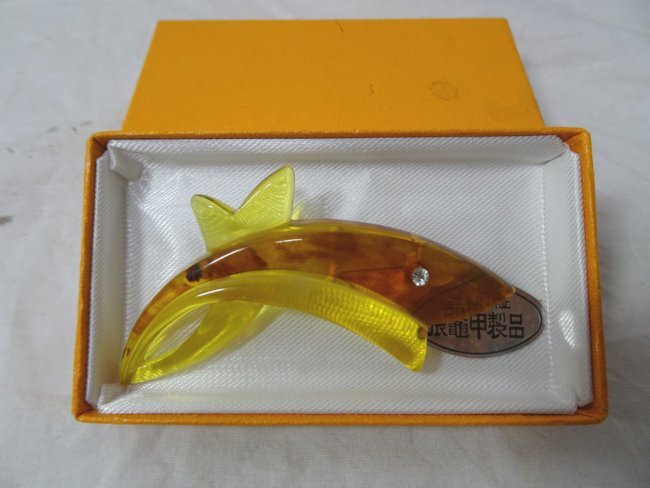 長崎特産、本鼈甲張のブローチです。 是非この機会に♪ ■■商品詳細■■ メーカー : 本鼈甲張 品名 : ブローチ サイズ : 全長約80㎜ 付属品 : 箱 ※掲載写真は蛍光灯等の光の反射により、多少色の違いがある場合が御座います。 【商品説明】 こちらの商品は”中古品”で御座います。 ◆商品状態 ・・・使用に伴うスレ、コキズが御座います。 本体に特記するような目立った傷や欠け等もなく 状態としては良好なお品となっております。 元箱の汚れが御座います。 画像にてご確認の程お願い致します。 目視による特記する様な破損は御座いません。 記載事項をご確認、ご納得の上ご入札の程お願い致します。 ☆店頭でのお引取り大歓迎☆ 別途:この他にも“色々”出品しています 【ここクリック】でご覧下さいませ。 | ||